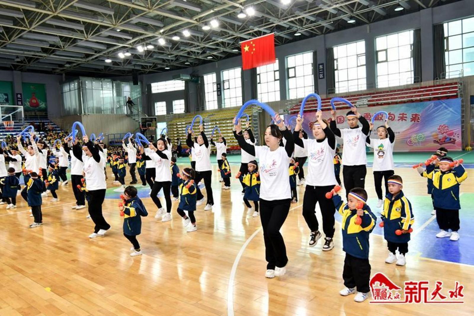 上午9时,伴随着嘹亮的运动员进行曲,小运动员在老师和引导员的引领下排着整齐的队伍,高喊着口号,雄赳赳、气昂昂地迈入赛场,全体幼儿老师、小朋友和家长在快乐的亲子趣味游戏中体验别样的人间真情,各幼儿园师生轮番登场的《中华美少年》《花样篮球》《花棒亲子舞》《雪龙吟》《花棍舞》《伞花朵朵花》《爱跳舞的小怪兽》《功夫宝贝》《花样年华》《鸭梨大》《象王行》《七彩雨伞变变变》《幸运一击》等寓教于乐的亲子趣味活动,进一步调动了孩子们参与体育活动的积极性,为家园共育架起了一座“彩虹桥”。