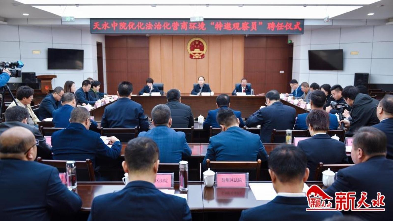 新天水讯【记者侯亚龙】11月14日,天水市中级人民法院举行优化法治化营商环境“特邀观察员”聘任仪式、典型案例发布会,向聘任的3名省级、20名市级“特邀观察员”颁发了聘任证书,发布了6件典型案例。市委常委、政法委书记邵建斌出席仪式并讲话,市中级人民法院院长张志利在仪式上致辞。