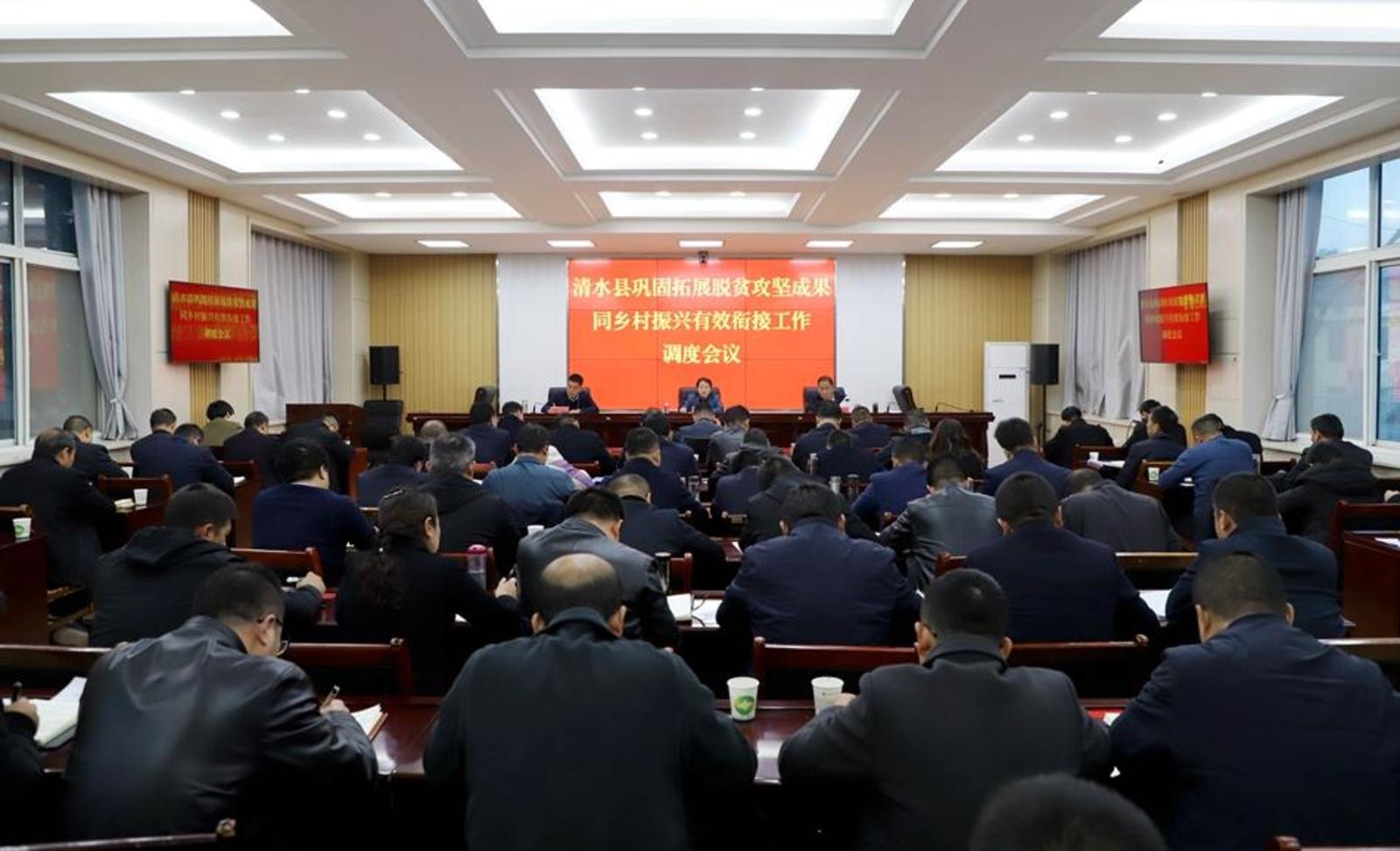 新天水讯 据清水县融媒体中心消息 11月14日,清水县召开巩固拓展脱贫攻坚成果同乡村振兴有效衔接工作调度会,贯彻落实全省会议精神,安排部署当前巩固拓展脱贫攻坚成果同乡村振兴有效衔接重点工作。县委副书记、县长李菊霞出席会议并讲话,县委副书记高建平主持会议。