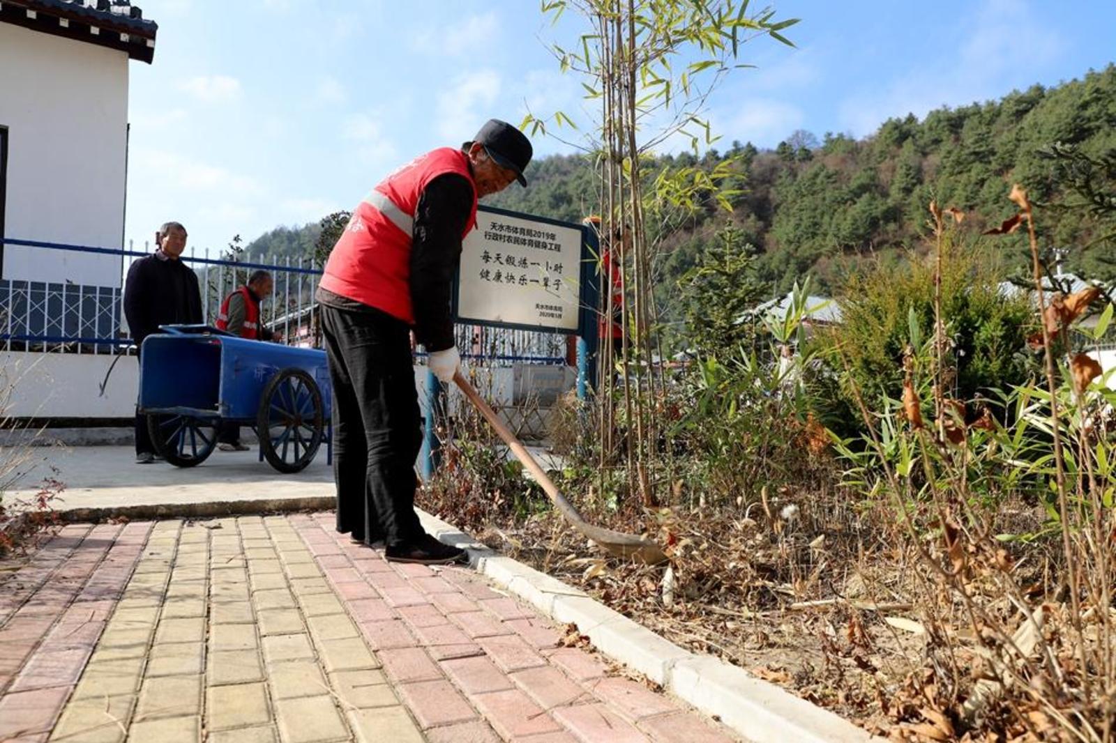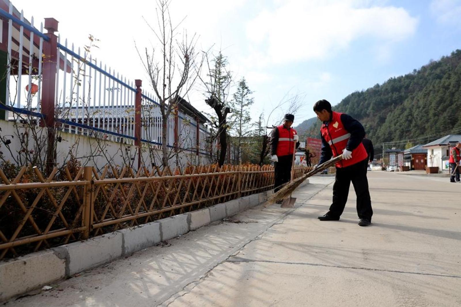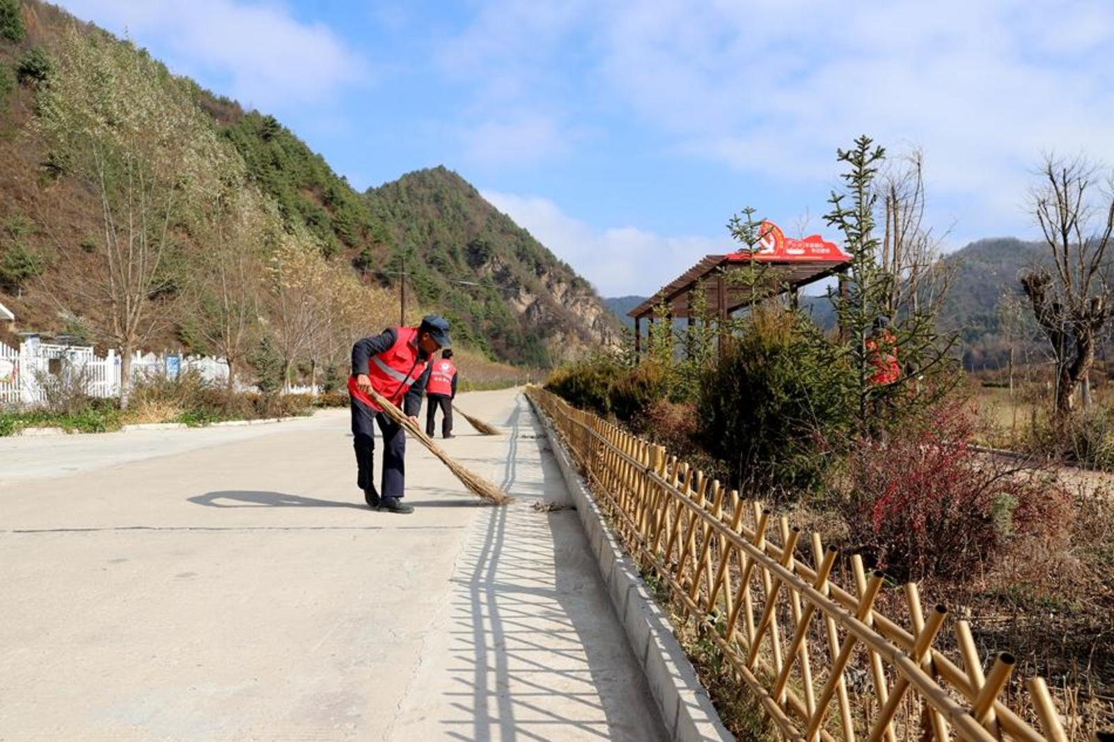 初冬时节,落叶飘零。走进山门镇高桥村,蓝天白云下清一色的居民自建房排列整齐,屋顶炊烟袅袅,墙面“生态宜居,治理有效”的壁画活泼生动。公益性岗位保洁员拿着铁锹、扫把、推着垃圾车,正忙着清扫巷道垃圾、铲除花园内的杂草。