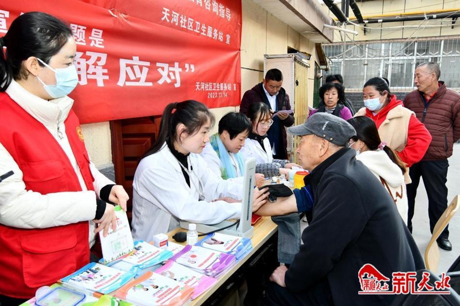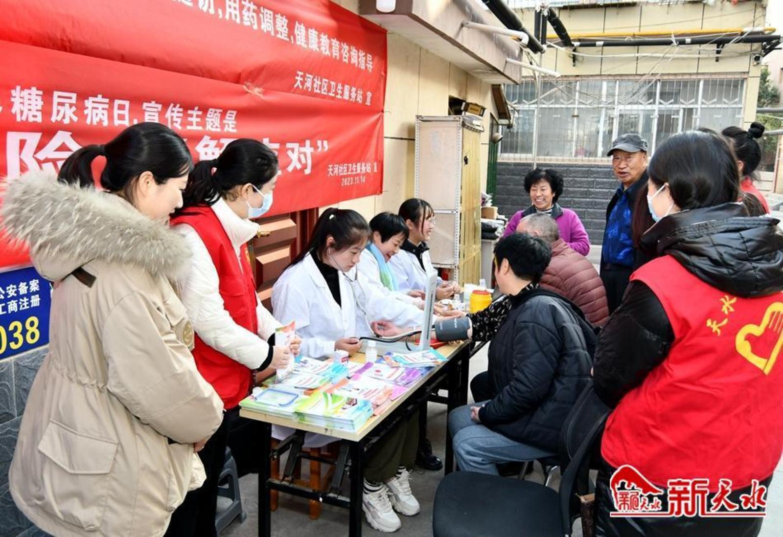 新天水讯【特约通讯员窦耀辉】11月14日,在第17个“世界糖尿病日”到来之际,麦积区桥南街道天河社区公共卫生委员会联合佳和物业新建巷片区便民服务中心、天水市住房公积金管理中心麦积管理部开展了义诊宣传活动。