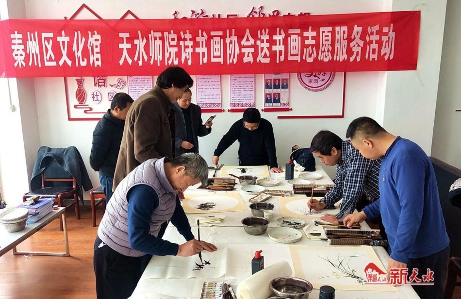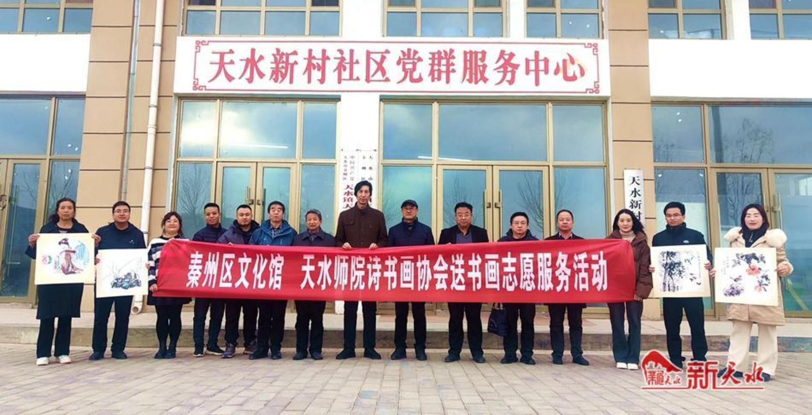 新天水讯 翰墨飘香书不尽喜悦,丹青生花表无限豪情。11月24日,由秦州区文旅局主办的送书画志愿服务活动在天水镇天水新村开展,为基层群众送去了丰盛的精神食粮。