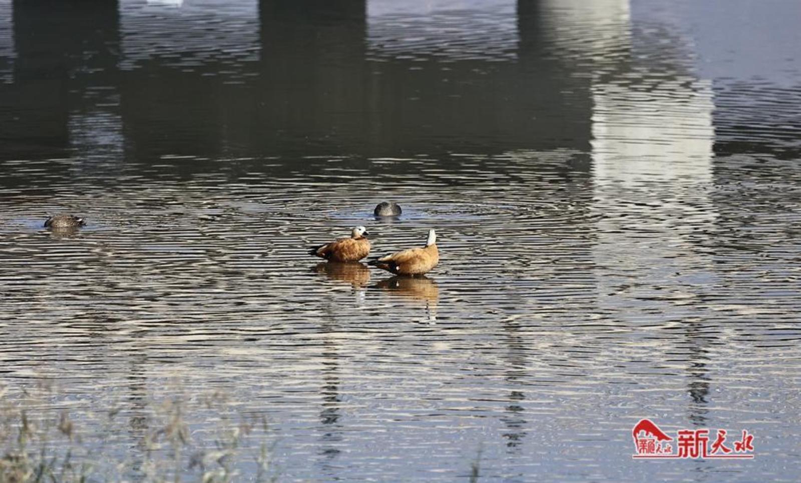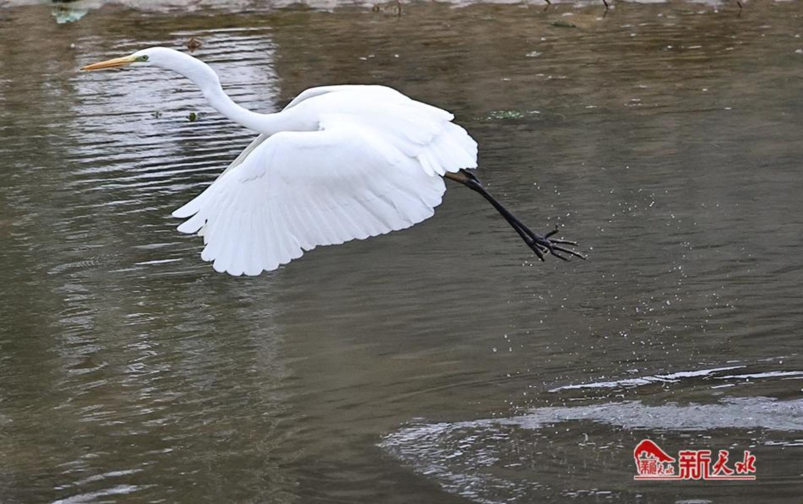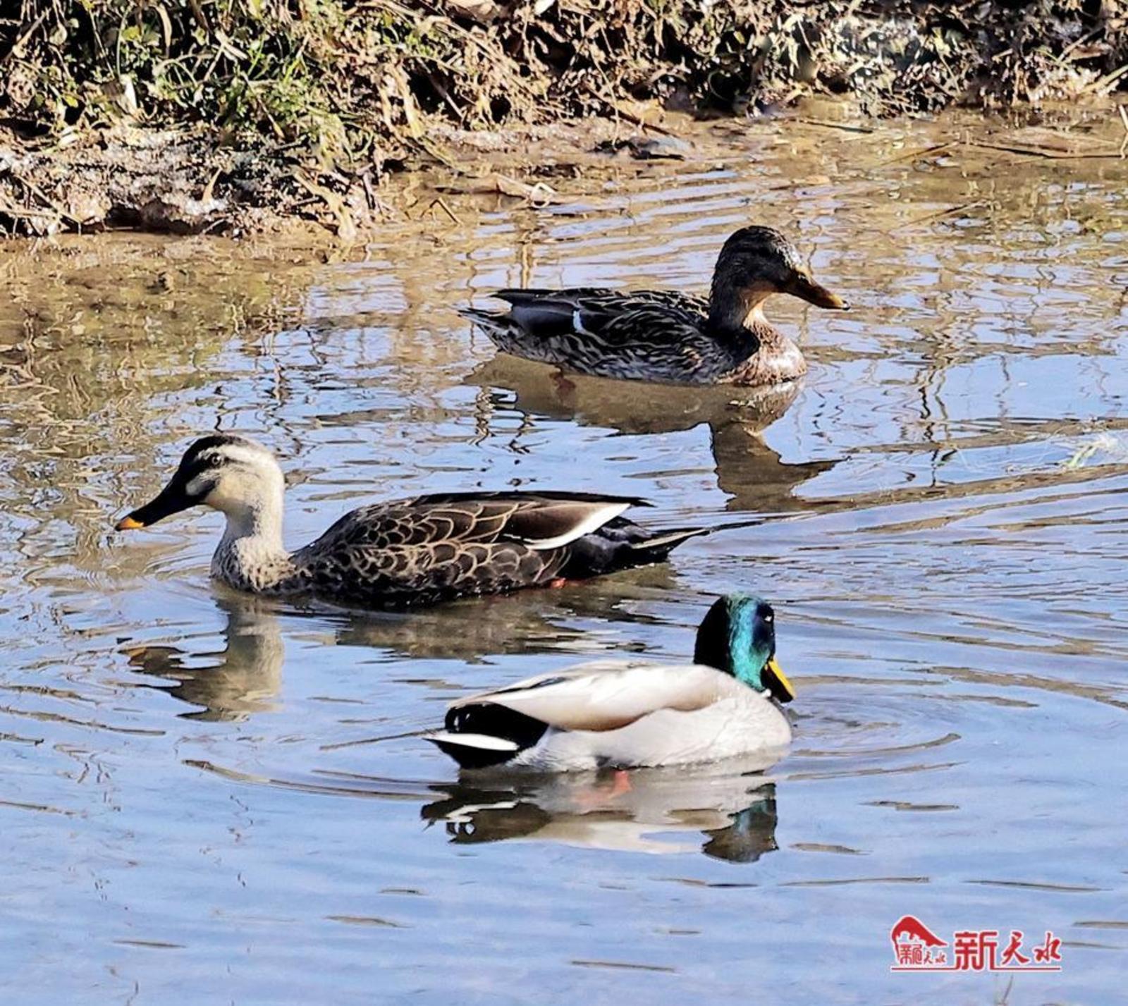 11月25日,初冬的武山县大南河河畔,碧波荡漾,风景宜人。成群白鹭或盘旋飞舞,或逐浪嬉戏,鸭群对对成行、自由自在,河两岸蔬菜大棚里忙碌的人群和群鸟和谐相处,相映成趣,勾勒出了一幅人与自然和谐共生的美丽画卷。(康喜 摄)