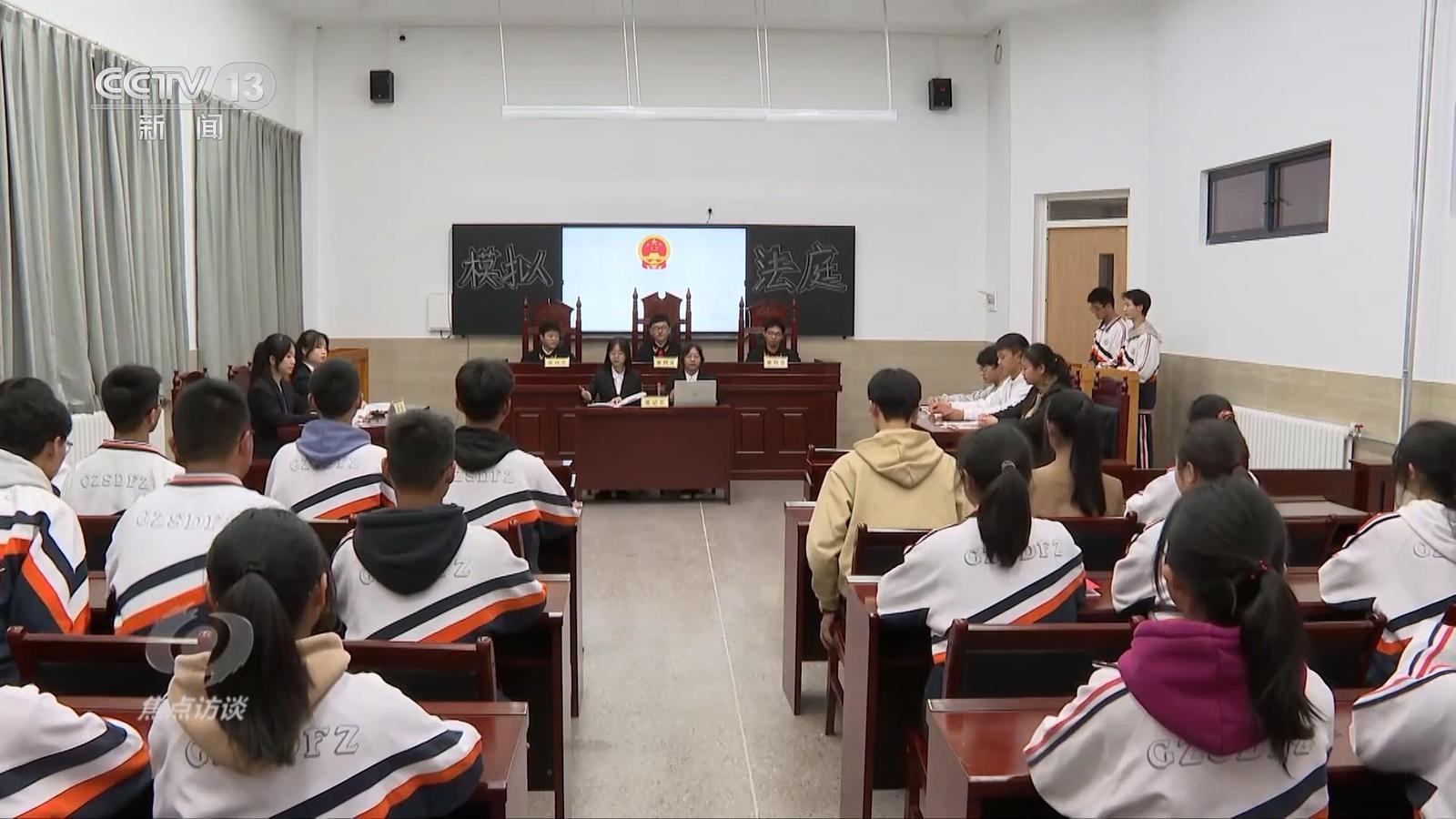 贵州师大附中高二学生朱培源正在参加学校组织的“模拟法庭”,他模拟的角色是审判长。这次“庭审”模拟的是前几年一起关于公民受教育权受到侵害的案件:某乡镇的一个家庭放任正在读初中的孩子辍学,经多次走访沟通无效后,镇人民政府一纸诉状把家长告上法庭。在“模拟法庭”上,朱培源宣读了宪法中的相关条文,并模拟宣判。