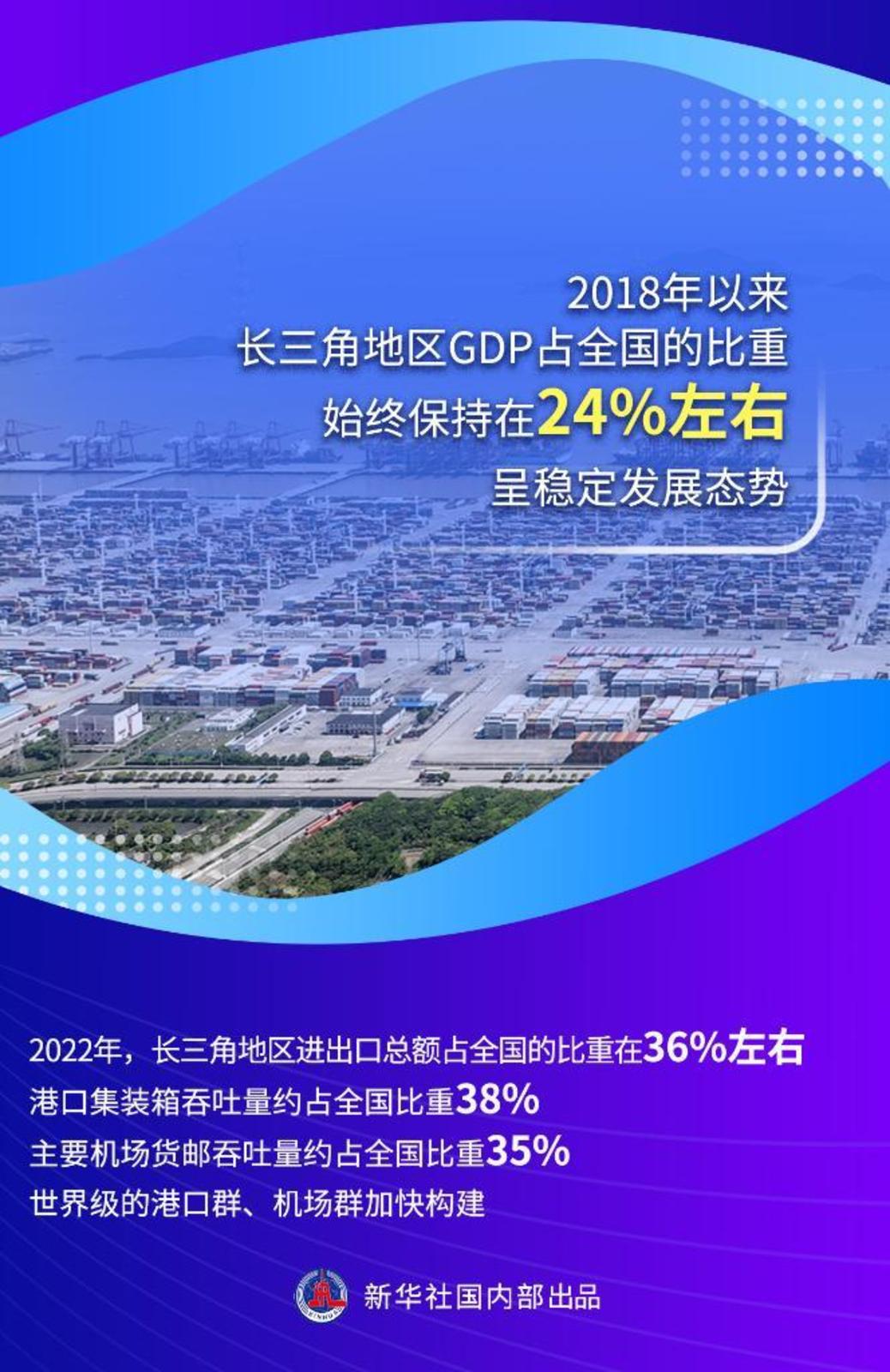 统计数据显示,2018年以来,长三角地区GDP占全国的比重始终保持在24%左右,呈稳定发展态势。GDP过万亿元的城市从6个提升到8个,约占全国万亿城市总数的1/3。