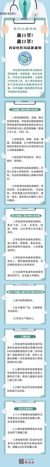 【新天水便民贴】戴口罩!戴口罩!国家疾控局最新通知