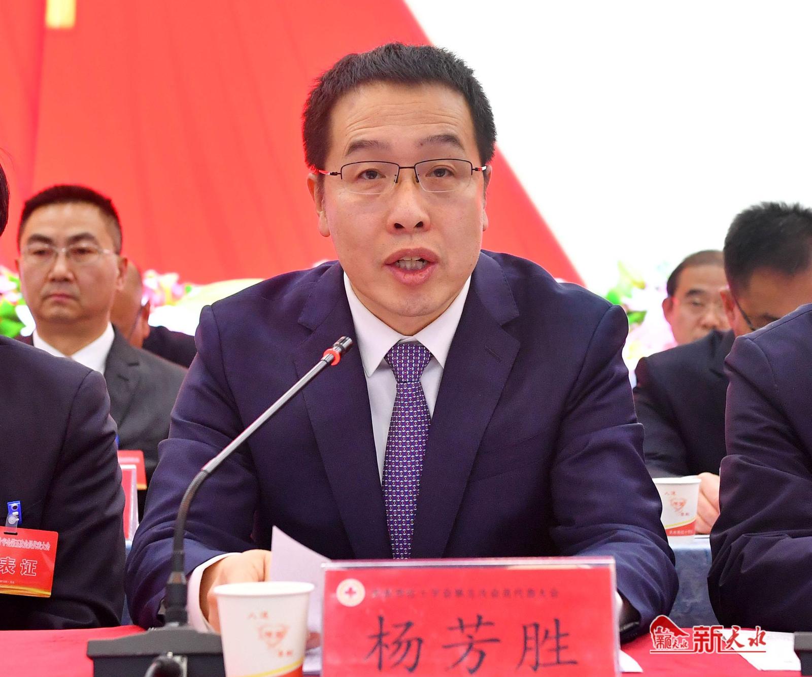 杨芳胜代表省红十字会向大会召开表示祝贺,希望天水市红十字系统深入学习贯彻党的二十大精神和习近平总书记关于红十字事业发展的重要论述,着眼群众所急、党政所需、红会所能,整合推进“三救三献”核心业务,在参与防灾减灾、应急救援、乡村振兴、健康甘肃行动、主动创安主动创稳中精准发力,持续用力,不断推动全市红十字事业再上新台阶。