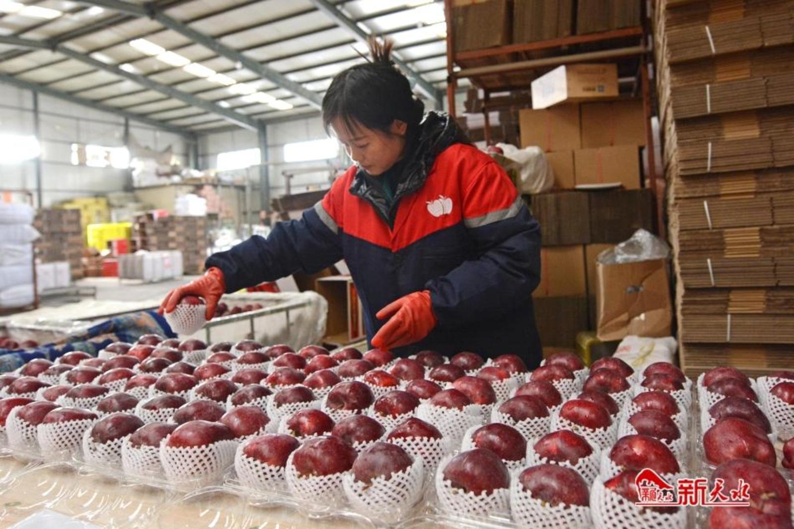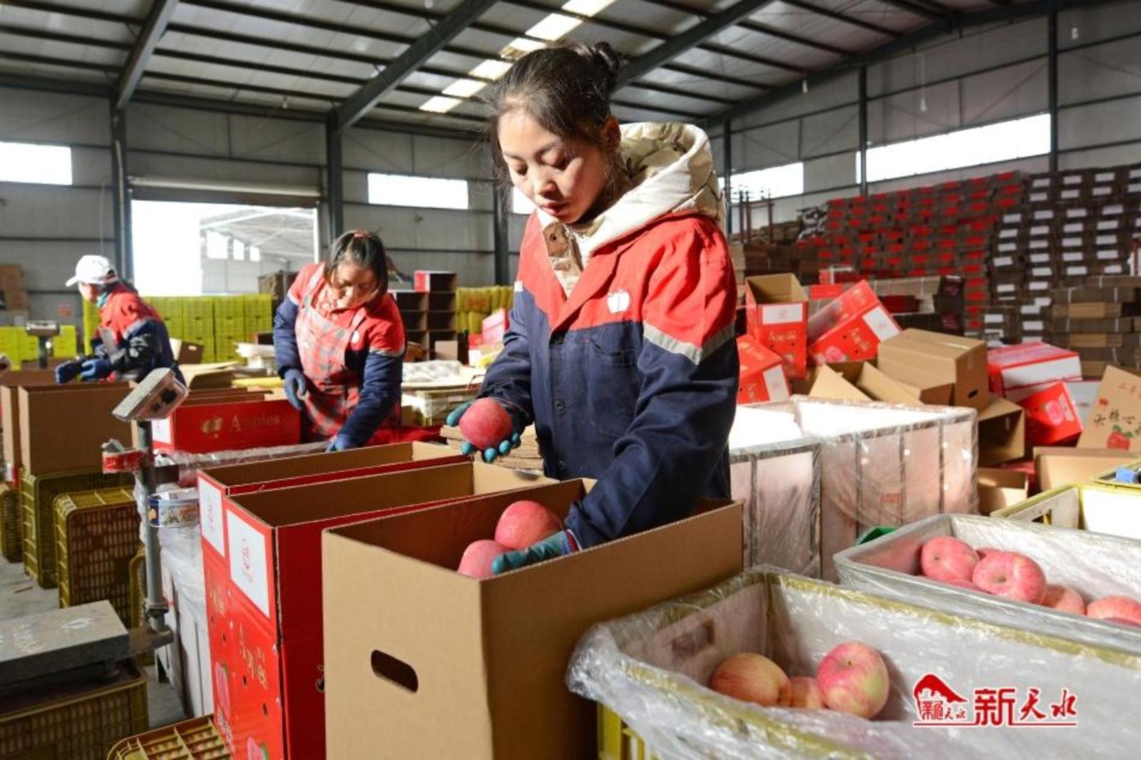 在秦安雪原果品有限责任公司的加工车间里,一颗颗红苹果“列队穿梭”在现代化分选线上,经过全自动水洗、烘干、全局扫描等多个环节,被分装在规格统一的包装箱中。