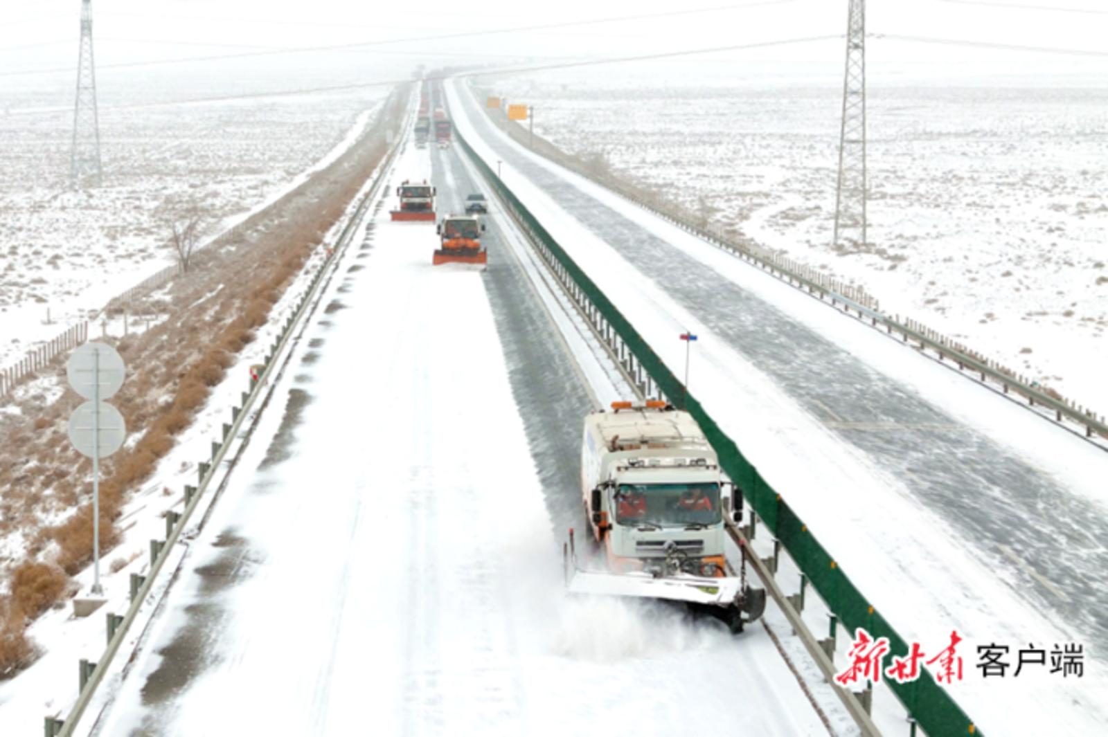 “13日晚,我们启动应急预案,出动综合除雪车、除雪滚刷、防滑料撒布机等机械设备,采用梯队除雪作业模式,人机配合昼夜不间断清除路面积雪,同时通过多个平台及时公布路况信息,提醒过往司乘人员雪天减速慢行。”酒泉公路事业发展中心有关负责人告诉记者,强寒潮导致酒泉境内大风、降温、降雪等恶劣天气叠加,高速公路及国省干线不同程度出现积雪或积冰现象,截至14日17时,酒泉公路事业发展中心已撒布融雪剂150.8吨、防滑料262立方米。