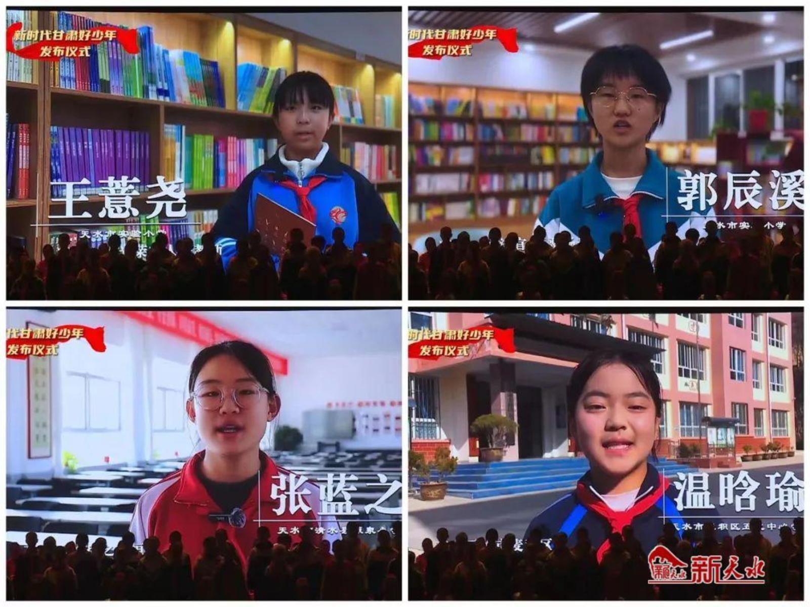 新天水讯 12月8日,2023年度“新时代甘肃好少年”先进事迹发布仪式在平凉市举行,我市清水县第三中学张蓝之、市逸夫实验中学郭辰溪、市实验小学王薏尧、麦积区五龙中心学校温晗瑜4名同学荣获“新时代甘肃好少年”荣誉称号。