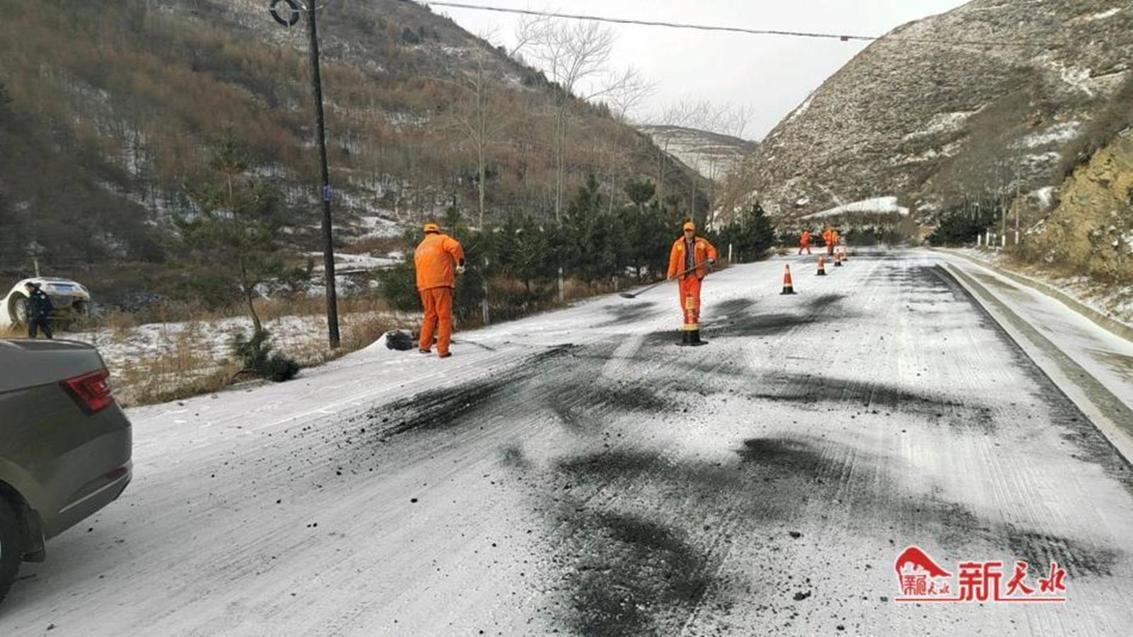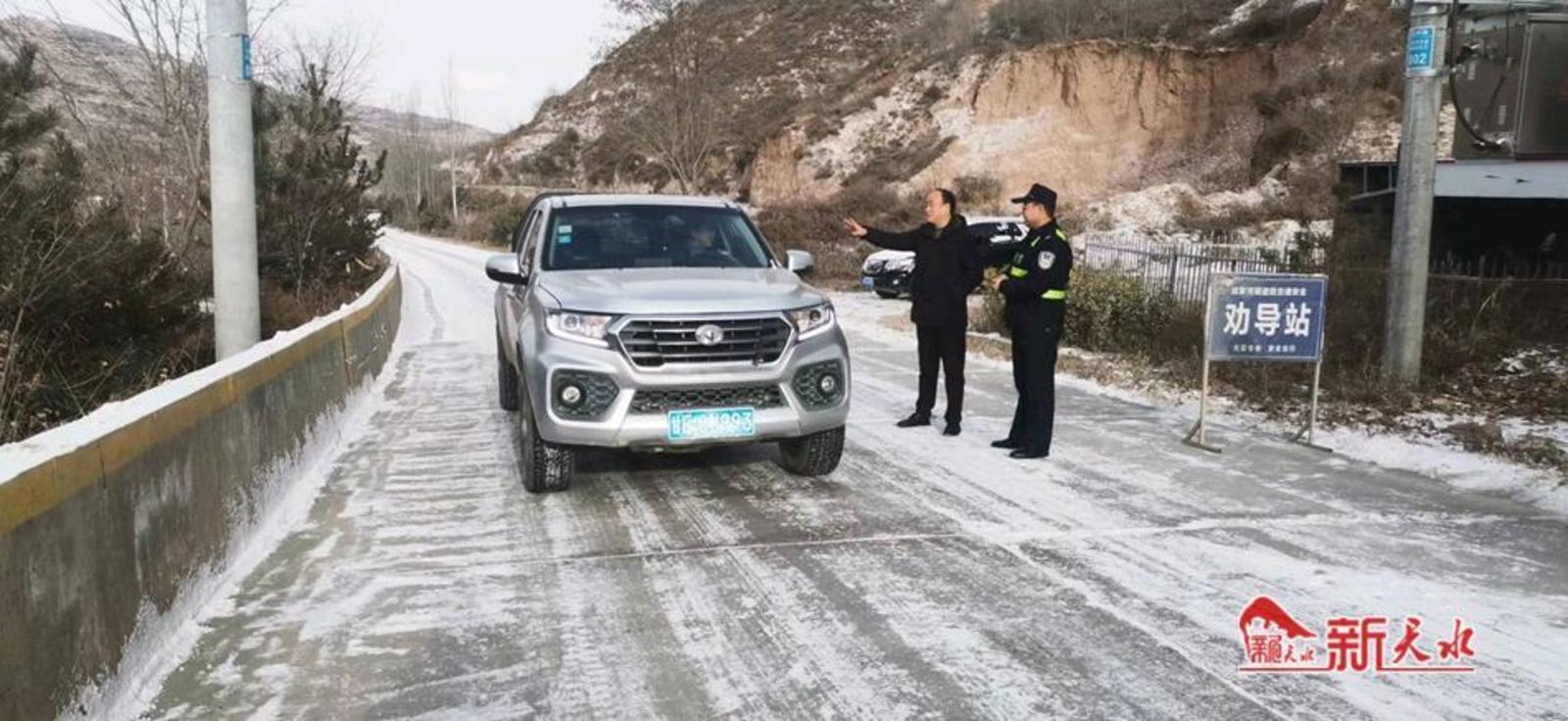 新天水讯 12月14日夜间到15日凌晨,天水市多地普降雨雪,部分路段出现积雪、结冰现象,全市各乡镇、公路养护部门、客运企业立即行动,组织广大党员干部和群众上路开展交通安全劝导、清扫积雪等工作,为广大司乘人员和群众的出行保驾护航。
