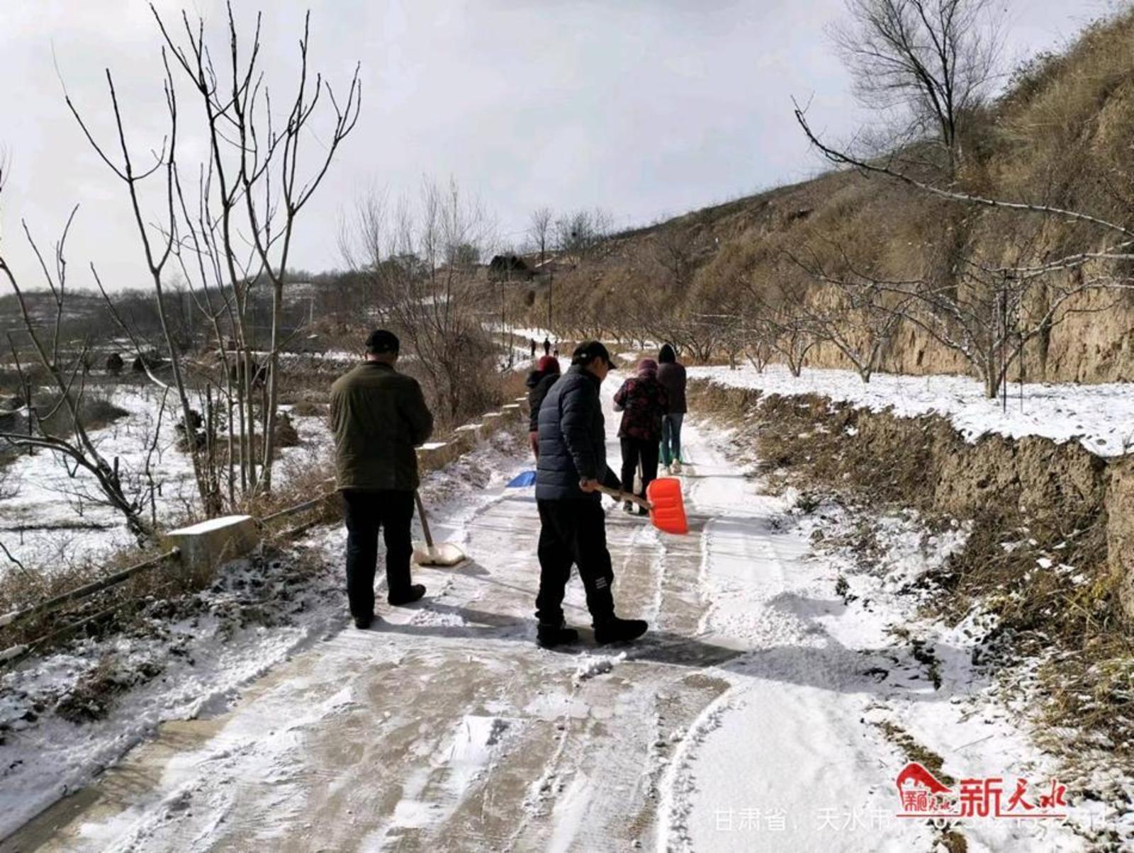 图为清水县王河镇开展“扫雪除冰保交通”活动(鲁淼 摄)