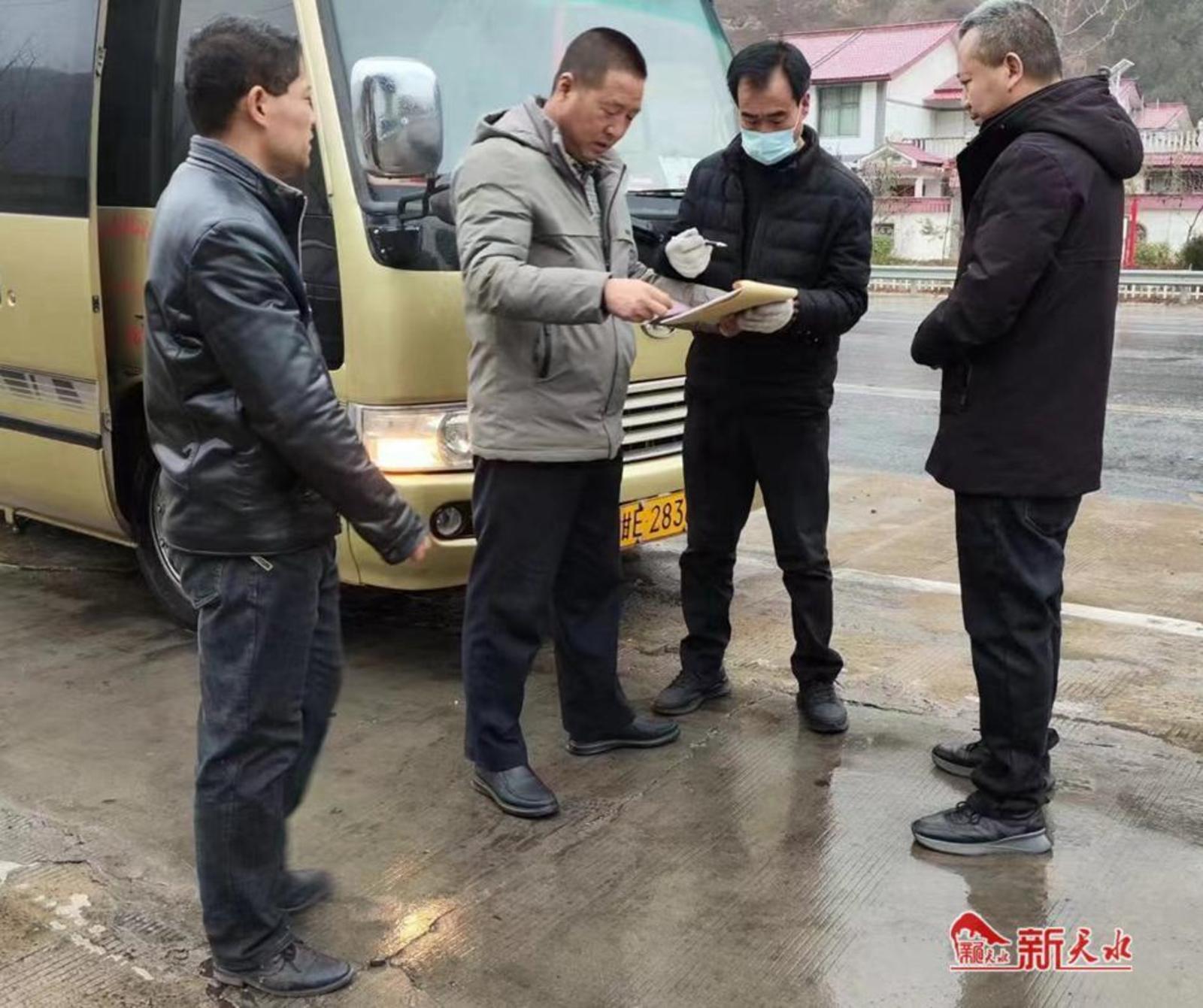 图为天嘉交运集团管理人员深入线路向驾驶员交代雨雪天气安全行车事项。(石建云 摄)