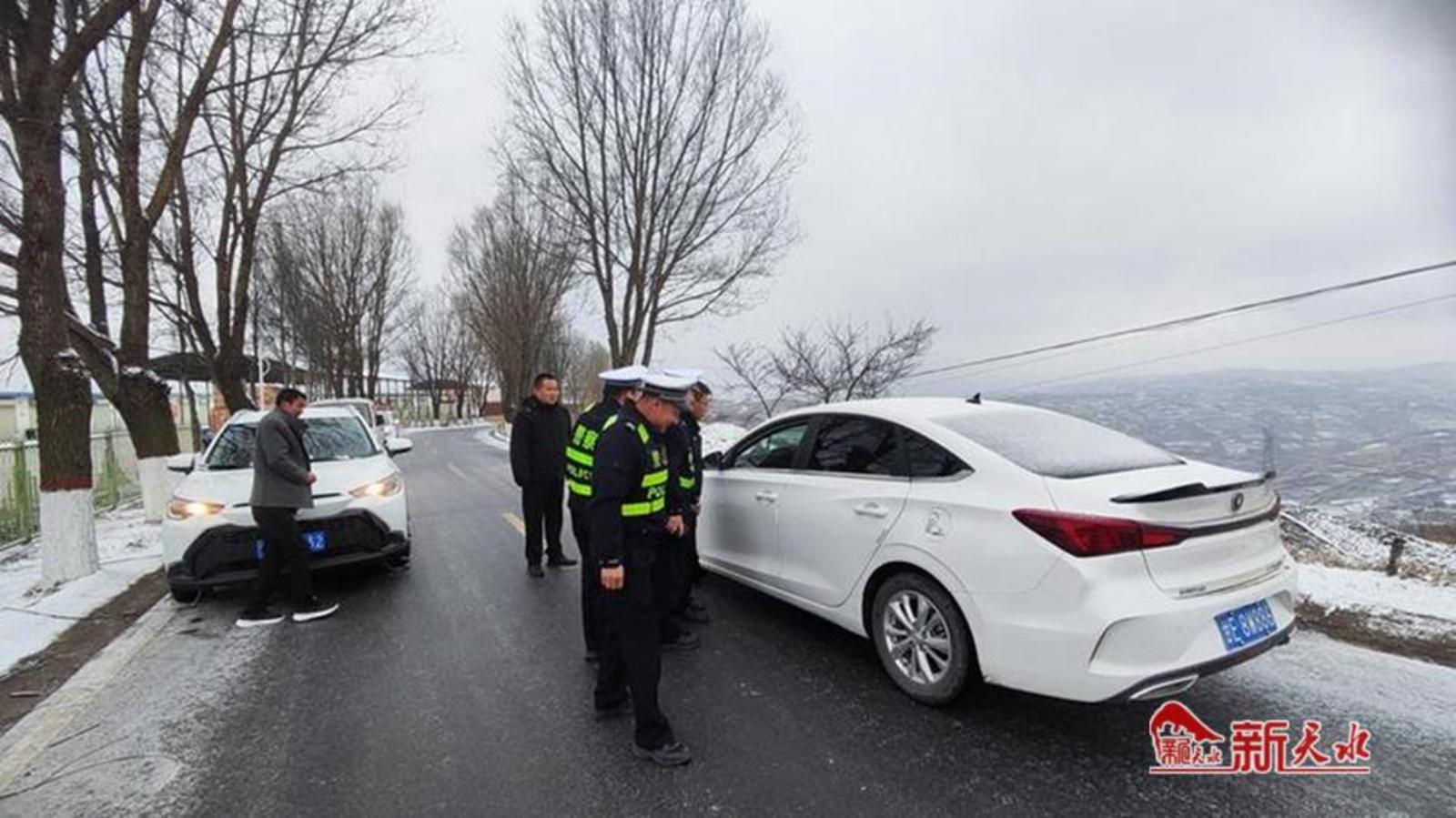 图为秦安县公安局刘坪派出所联合县交警大队、刘坪镇交管站开展交通安全疏导工作。(陈东强 摄)