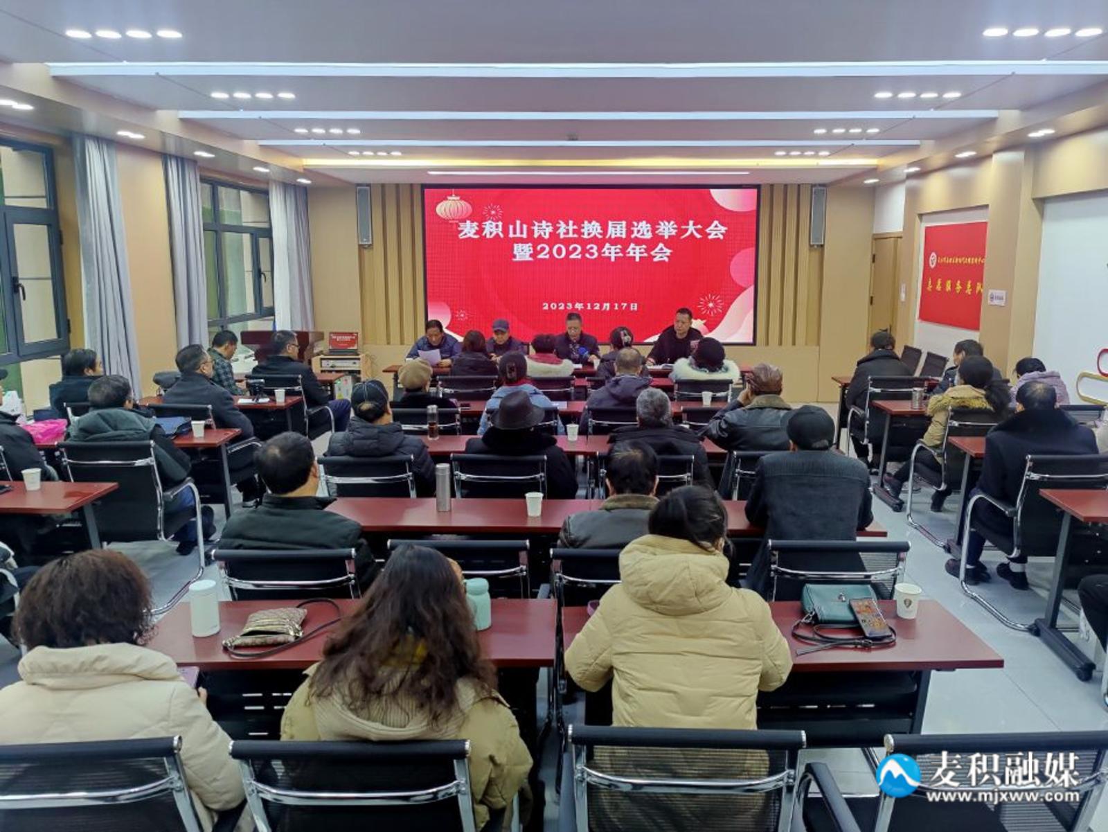 新天水讯 据麦积区融媒体中心消息 12月17日,麦积山诗社召开换届选举大会暨2023年年会。会议总结了2023年暨过去五年诗社工作,选举出了新一届理事会及领导班子。