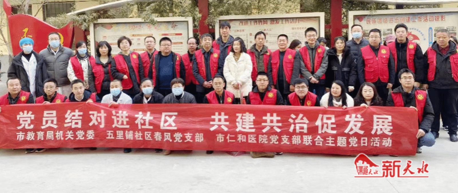 新天水讯 【通讯员李玉荣】为进一步落实党员“双报到”工作,帮助社区群众解决困难,增强群众的获得感幸福感安全感。近日,市教育局机关党委与秦州区五里铺社区春风党支部、市仁和医院党支部开展了“党员结对进社区,共建共治促发展”结对共建主题党日活动。