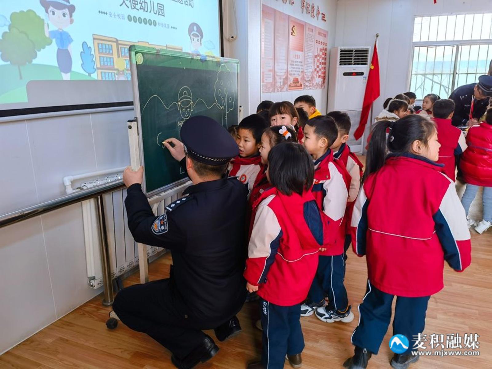 活动中,麦积公安分局巡警大队和交警大队的民警分别以生动有趣、通俗易懂的语言现场讲解真实案例、开展互动教学,通过提问、做游戏等方式加强与小朋友的互动,有效提升了幼儿的参与积极性。小朋友们积极踊跃发言,场面活跃融洽,在阵阵欢声笑语中提高了孩子们的自我防范意识。同时,麦积公安文联的会员代表还现场创作书法美术作品,为师生撰写春联福字。小朋友和民警现场互动,寓教于乐,气氛热烈。“今天我们学校来了很多警察叔叔,他们教我们保护自己的方法,我非常开心。”麦积区天使幼儿园小朋友伏淑妍高兴地说。