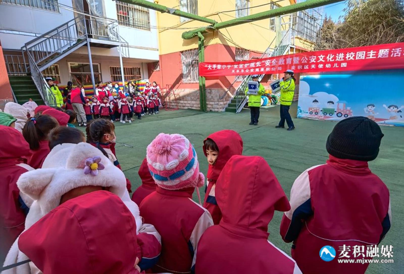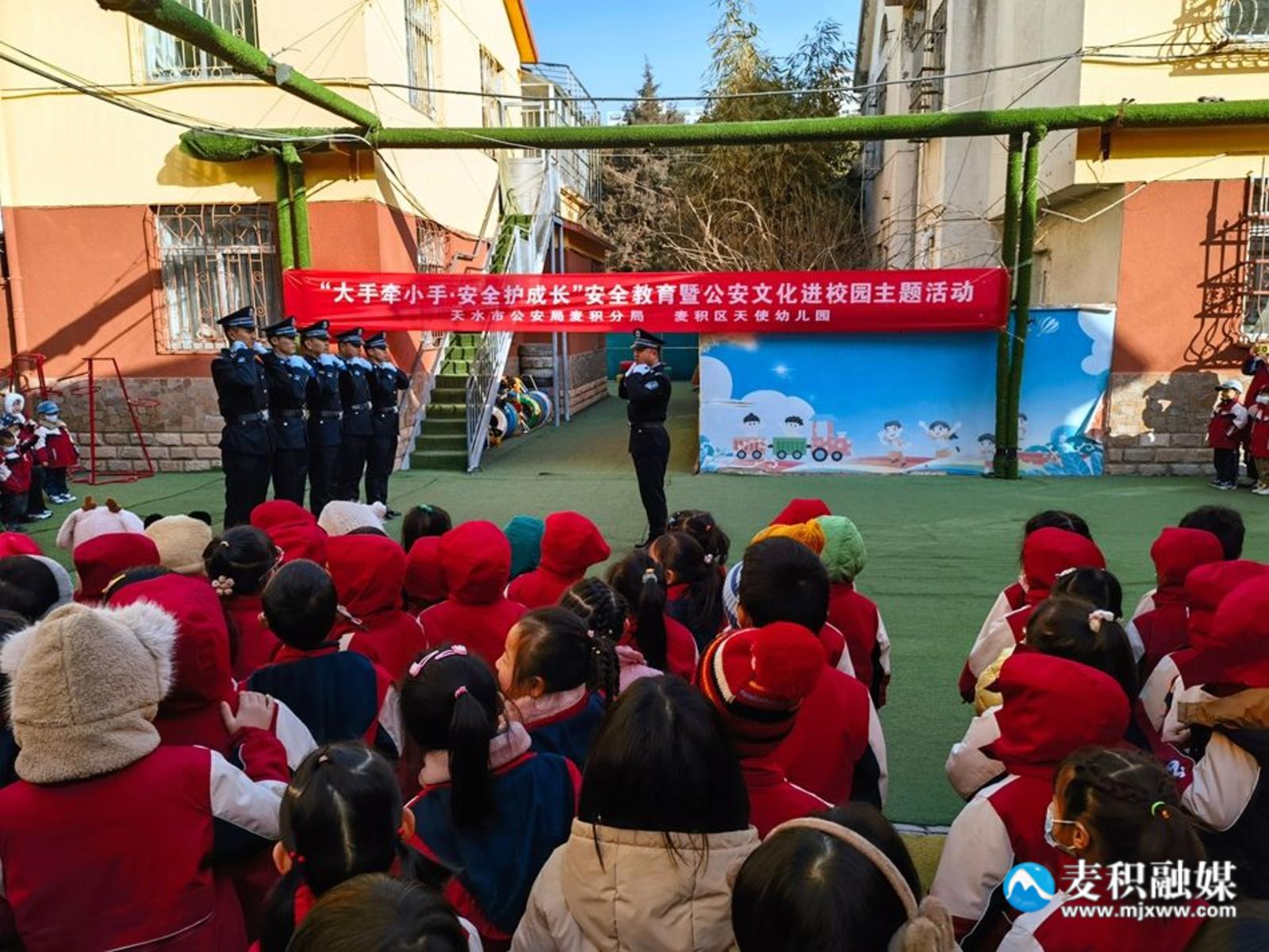 新天水讯 据麦积区融媒体中心消息 “遇到坏人怎么办?我们能不能随便回答陌生人的问题?能不能接受陌生人的礼物?”“不能!”“不能随便相信陌生人!”“不可以随便吃陌生人给的食物……”12月19日,麦积公安分局走进辖区幼儿园开展“大手牵小手、安全护成长”安全教育暨公安文化进校园主题活动,为在校幼儿上了一堂别开生面的安全教育课,帮助孩子们了解日常生活安全知识,增强自我保护意识。