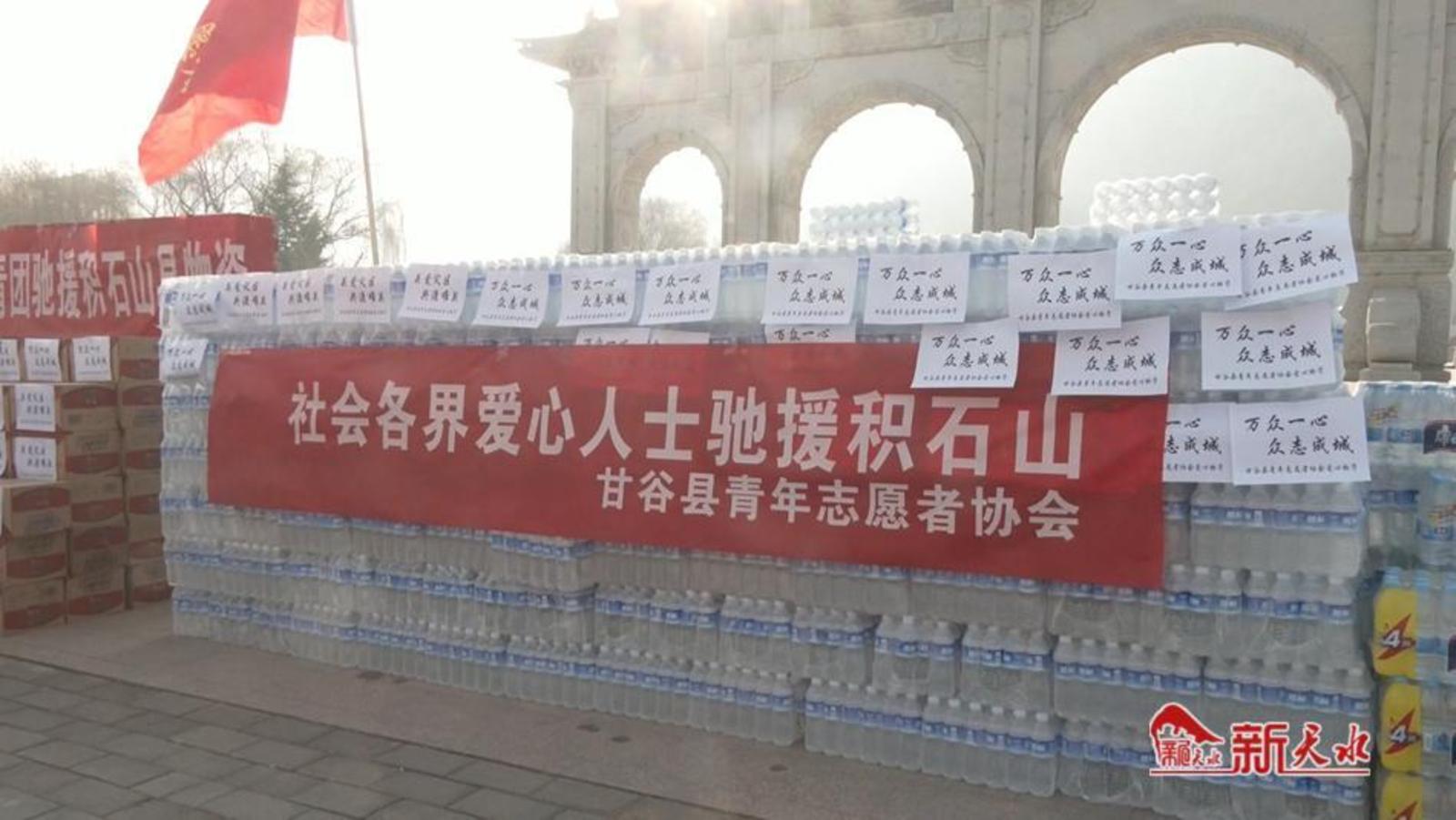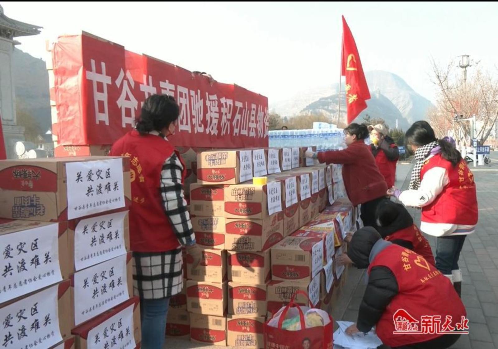 12月20日上午,30余名甘谷县青年志愿者协会的志愿者将筹集到的救灾物资统一装车后运往灾区,帮助受灾群众渡过难关。