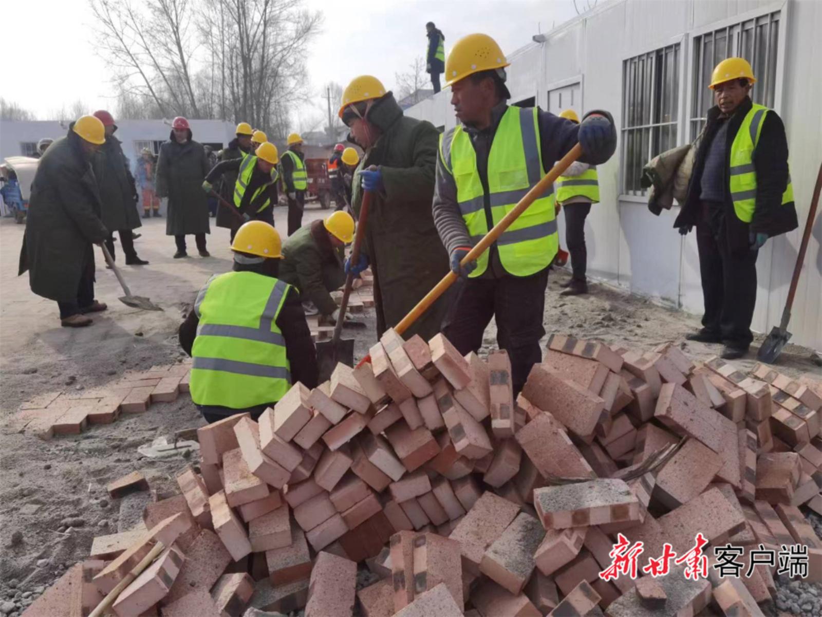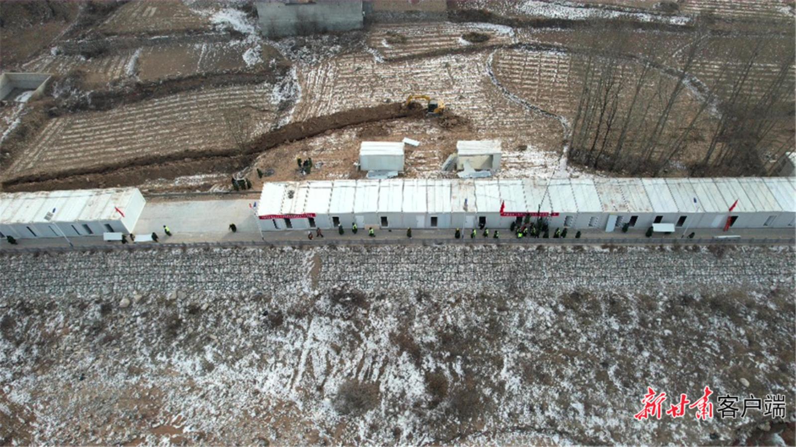 在团结村村委会一侧,由甘肃建投承建的一处安置点已基本完工,院子一角,工人们正在用砖铺设地面。“板房安装和地面硬化是昨晚开始的,这一夜,我们一边吊装板房,一边对安置点院子和周边进行硬化,一夜之间就将这个院子建成了。”甘肃建投土木公司安全生产副总经理李伟说。