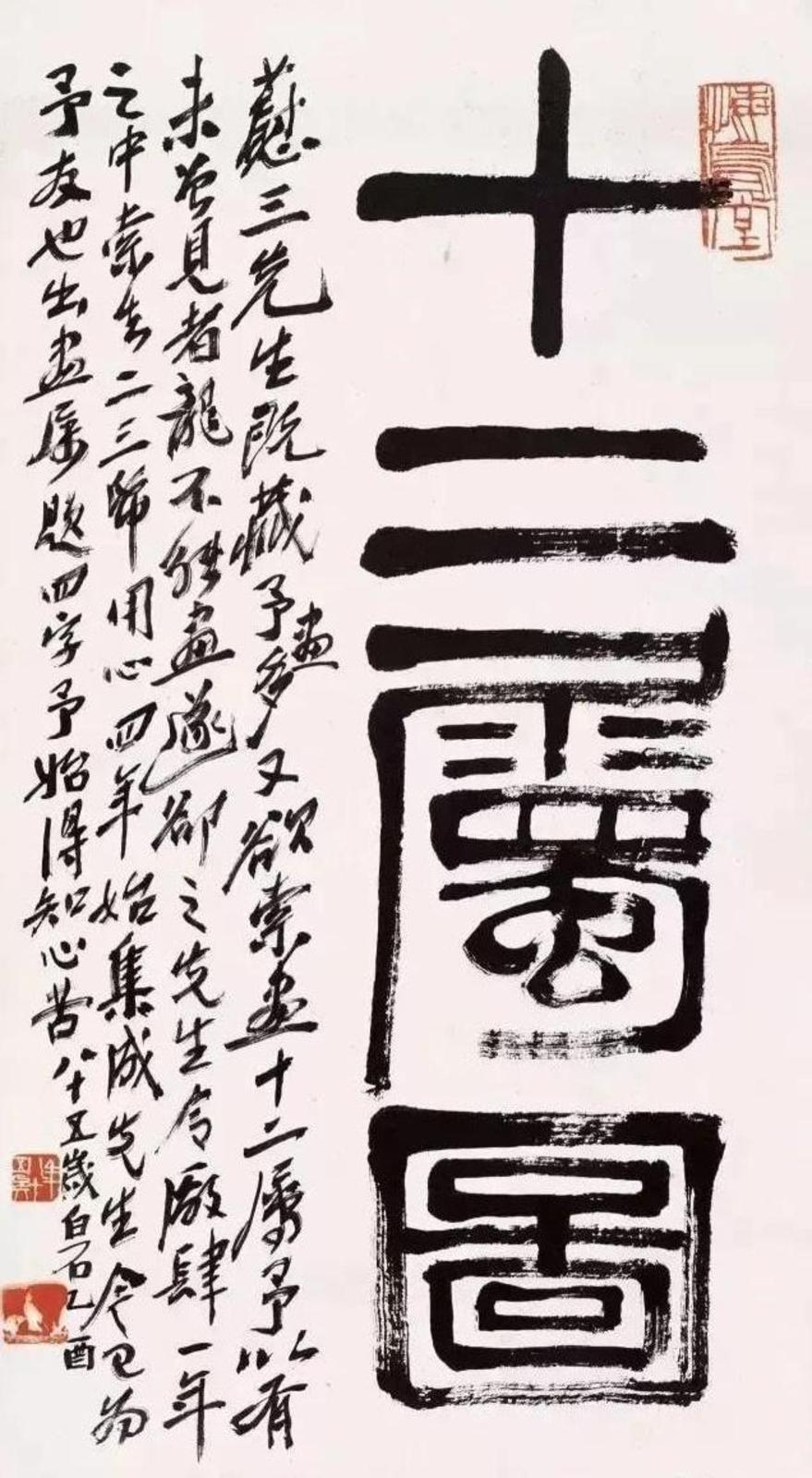 齐白石题跋 《十二属图》封面 1945年 北京画院藏