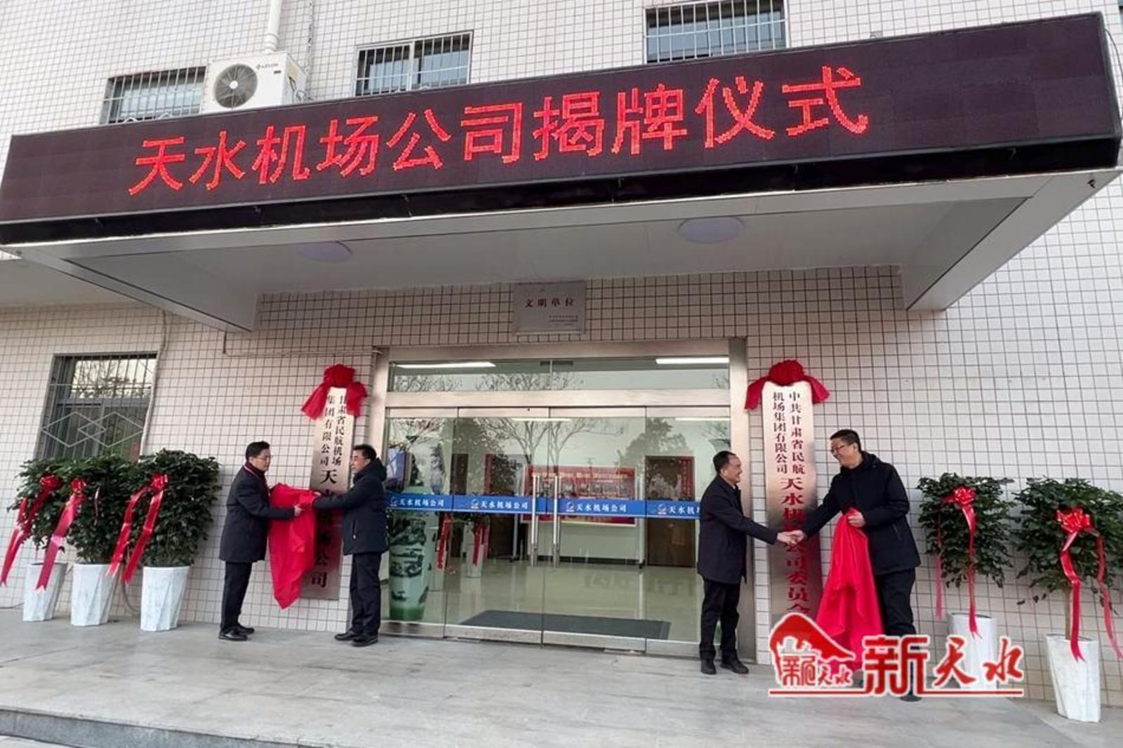 当天,天水机场复航仪式前,省民航机场集团和天水市共同举行了天水机场公司揭牌仪式。王贵玉宣读了天水机场公司成立文件。冯文戈、王贵玉为中共天水机场公司委员会揭牌,王国先、石华雄为天水机场公司揭牌。
