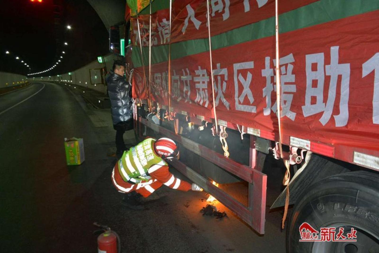 9时10分,救援人员到达现场,规范设置安全防护区域后开始作业。经现场检查,这辆满载救灾物资的运输车因燃油冻结而无法启动。救援人员立即采取烤火加热的方式对油箱及油管进行解冻。经过半小时的努力,车辆成功启动。为防止车辆再次熄火,救援人员决定护送其安全通行。10时7分,在救援人员的护航下,满载救灾物资的运输车辆安全顺利通过辖区路段。