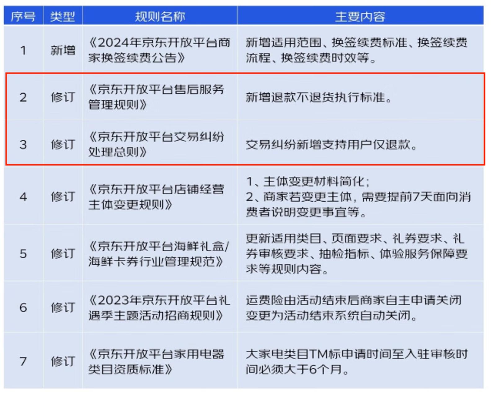 12月27日,京东平台规则网站显示,京东近期修订《京东开放平台交易纠纷处理总则》,主要内容为交易纠纷新增支持用户仅退款。据了解,此前在京东,消费者仅能申请换货和退货退款。仅退款的操作模式为,消费者无需返回原商品,退款完成后,将不能对此商品再次发起退货申请。