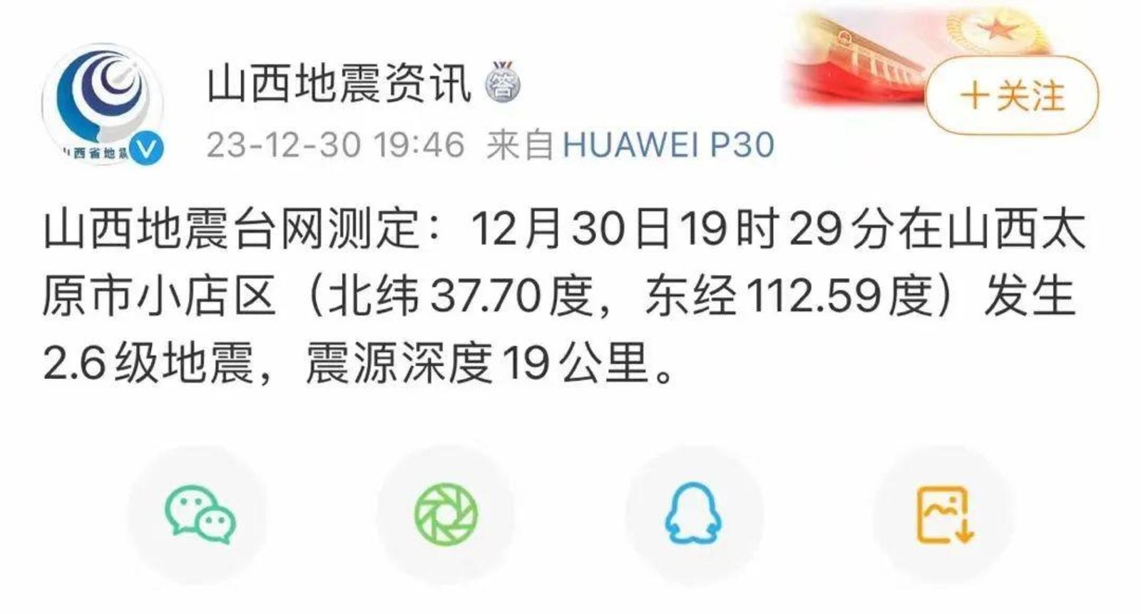 山西太原发生地震