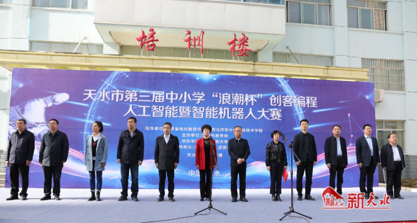 4月15日,天水市第三届中小学“浪潮杯”创客编程人工智能暨智能机器人大赛在天水开放大学开幕,“天水市教育信息化教师融合发展研训基地”和“西北师范大学教育技术学院人工智能科技创新教育研究与实践基地”同日揭牌。全市创新运用国家中小学智慧教育平台、甘肃省智慧教育平台和天水云教育平台资源,搭建专递课堂408个、名师课堂4个、名校网络课堂52个,创建省级智慧教育标杆校7所、市级智慧教育标杆校108所、人工智能创客学校20所,实现各级各类学校优质数字资源全覆盖;不断培养学生“数字素养”,126名学生在省级以上竞赛活动中获奖,3名学生获全国“创新之星”荣誉称号。