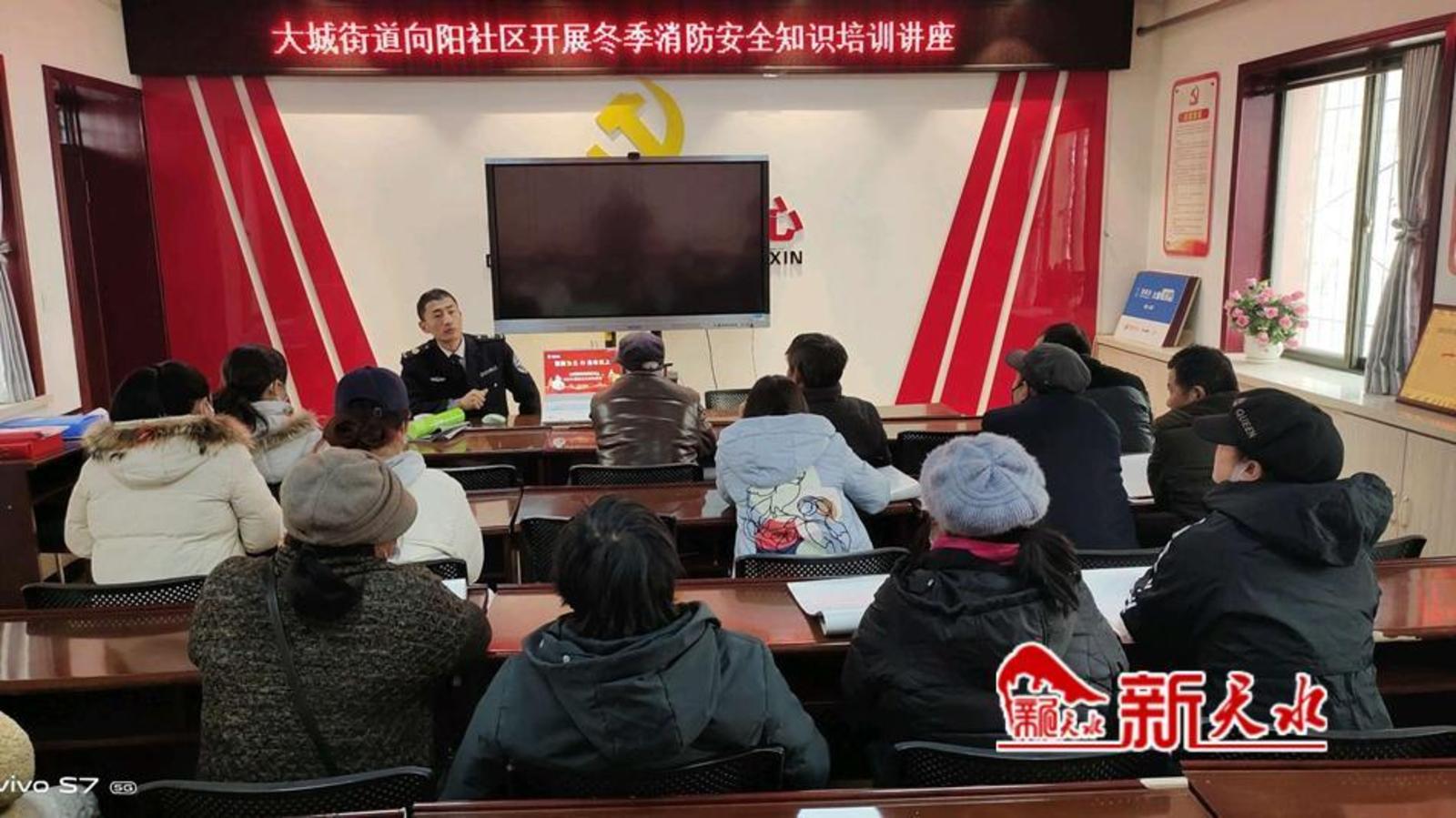 新天水讯 为切实做好冬季辖区消防安全工作,增强居民安全意识,大城街道向阳社区按照“预防为主、防消结合”的工作计划,于近日联合消防培训单位开展了冬季消防知识培训讲座,对辖区商户和居民进行消防知识培训。