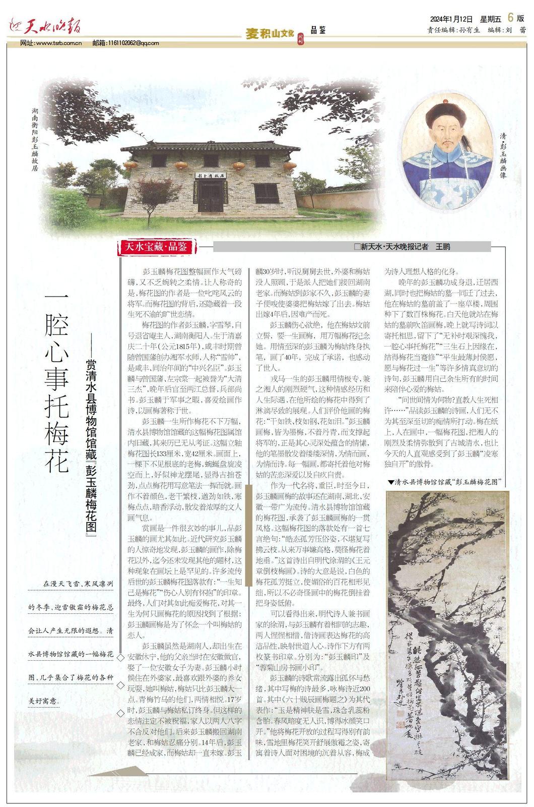 清水县博物馆馆藏“彭玉麟梅花图”