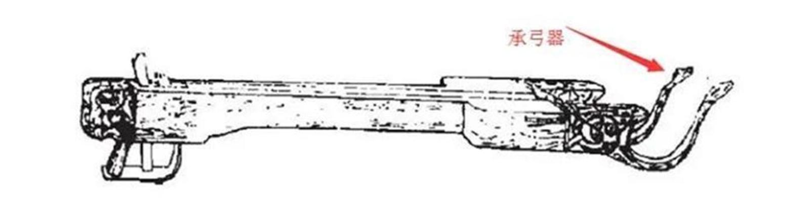 在秦陵一号铜车车舆左侧的前栏上,有一对完整的承弓器,上面承托有一架完备的弩机。基于实际出土情况可以推断,承弓器是专门在战车上使用的装置,是战车在行进时安放弓弩的固定支架,它既不是弓弩弩臂的附属物或铜饰,也不是战斗时射手的瞄准器。