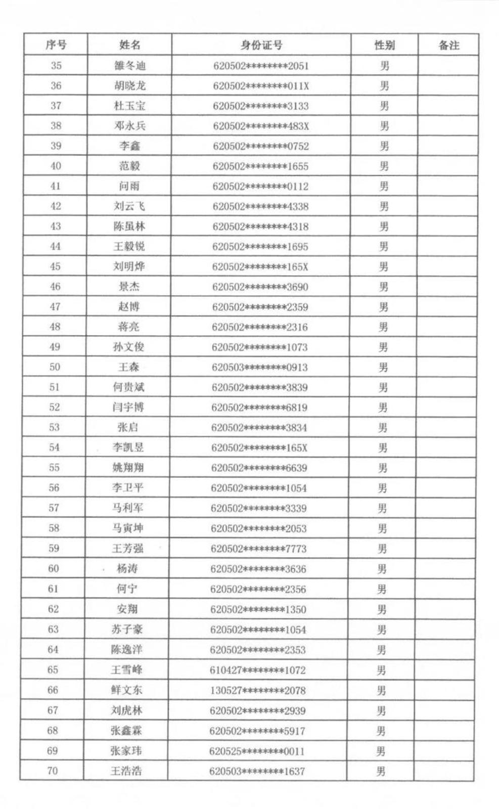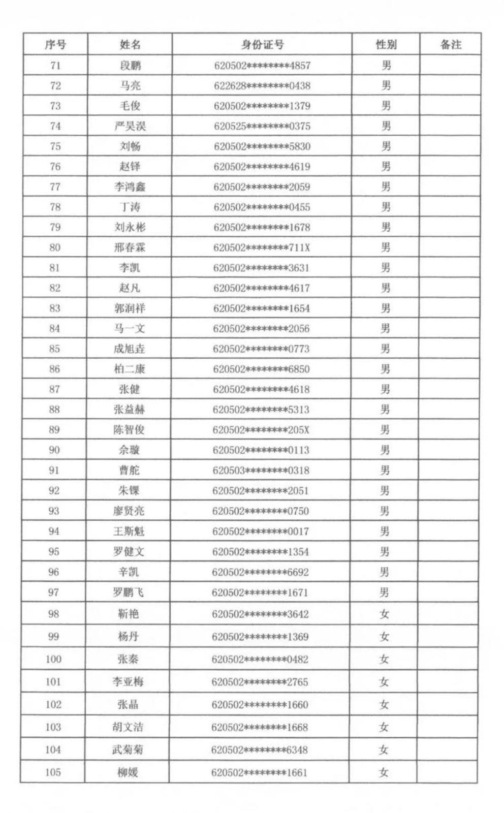 根据天水市秦州区人力资源和社会保障局、天水市公安局秦州分局关于2023年公开招聘警务辅助人员工作安排,通过笔试、面试、体检、政审,拟聘用警务辅助人员男性97名、女性72名,现将拟聘用人员名单公示如下,广泛接受社会各界的监督。公示期满后,将按程序办理聘用派遣手续。