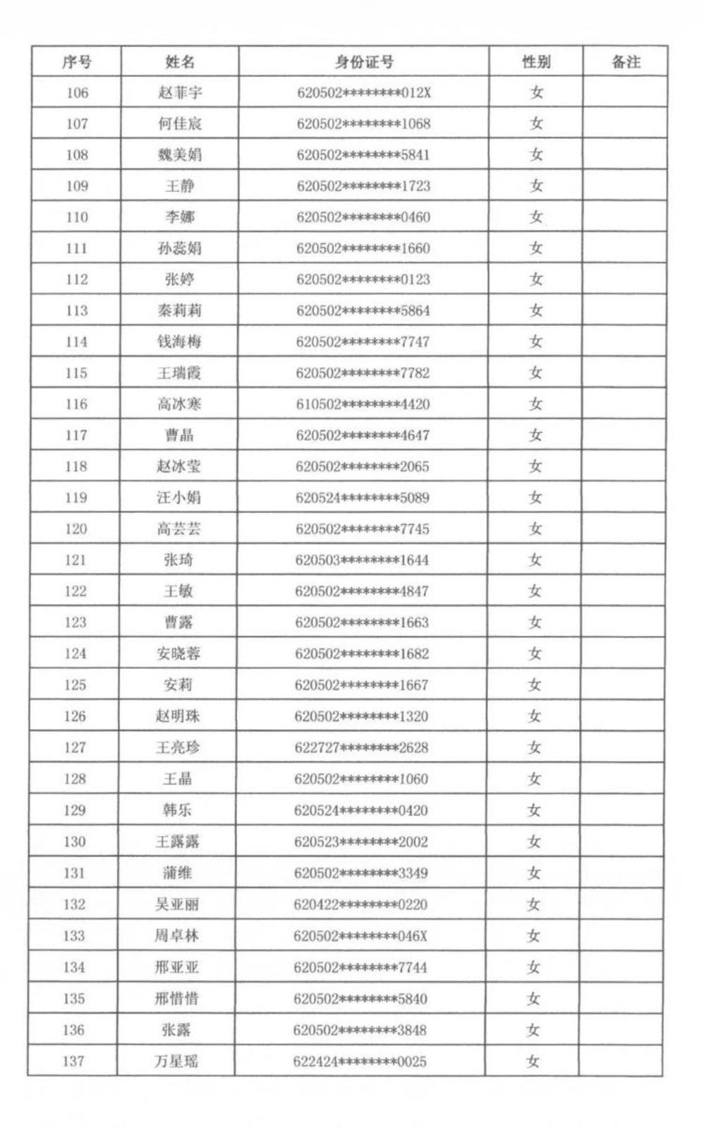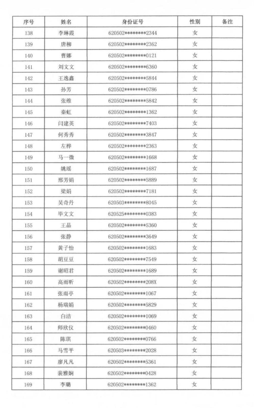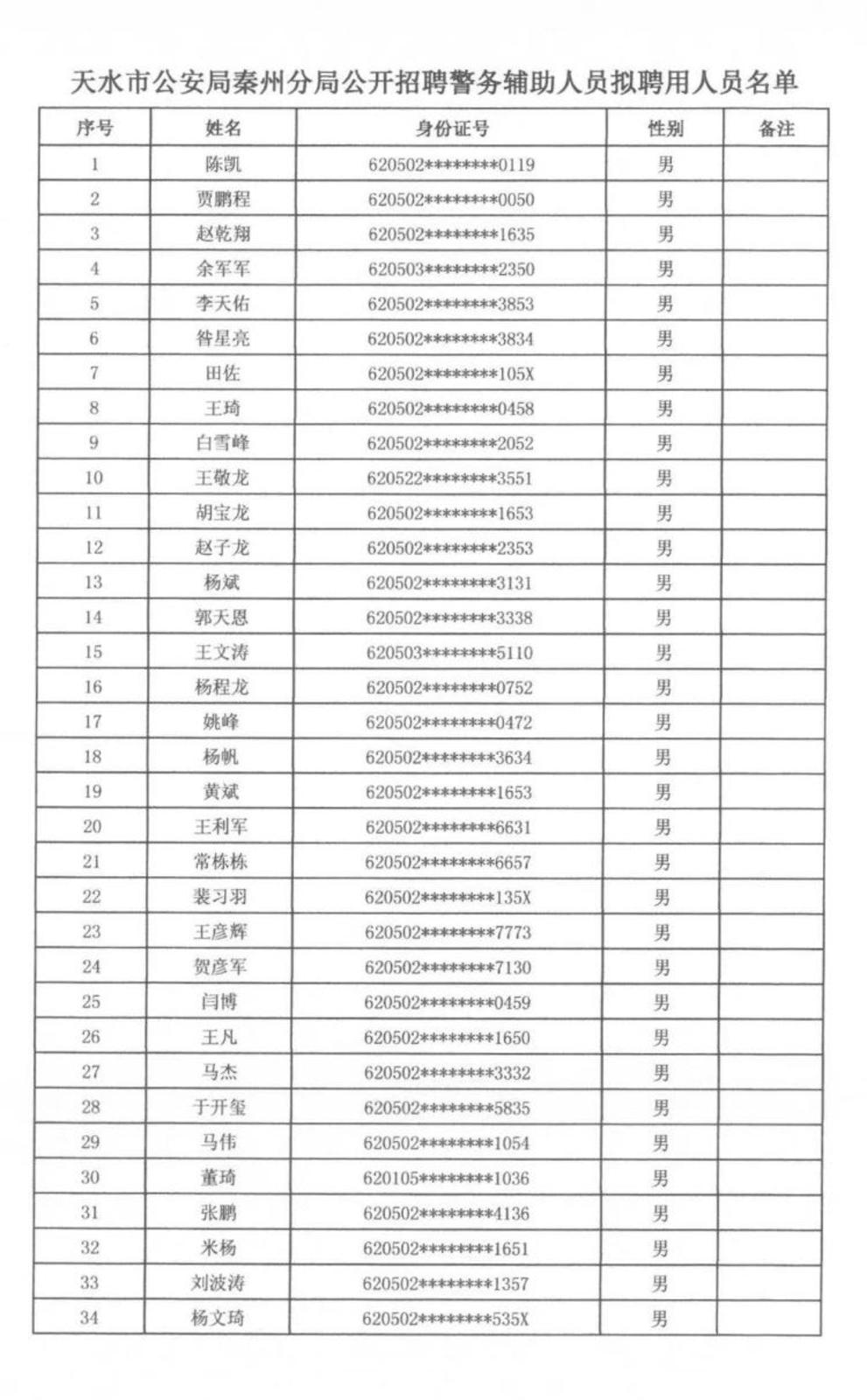 天水市秦州区人力资源和社会保障局 天水市公安局秦州分局关于公开招聘警务辅助人员拟聘用人员名单公示