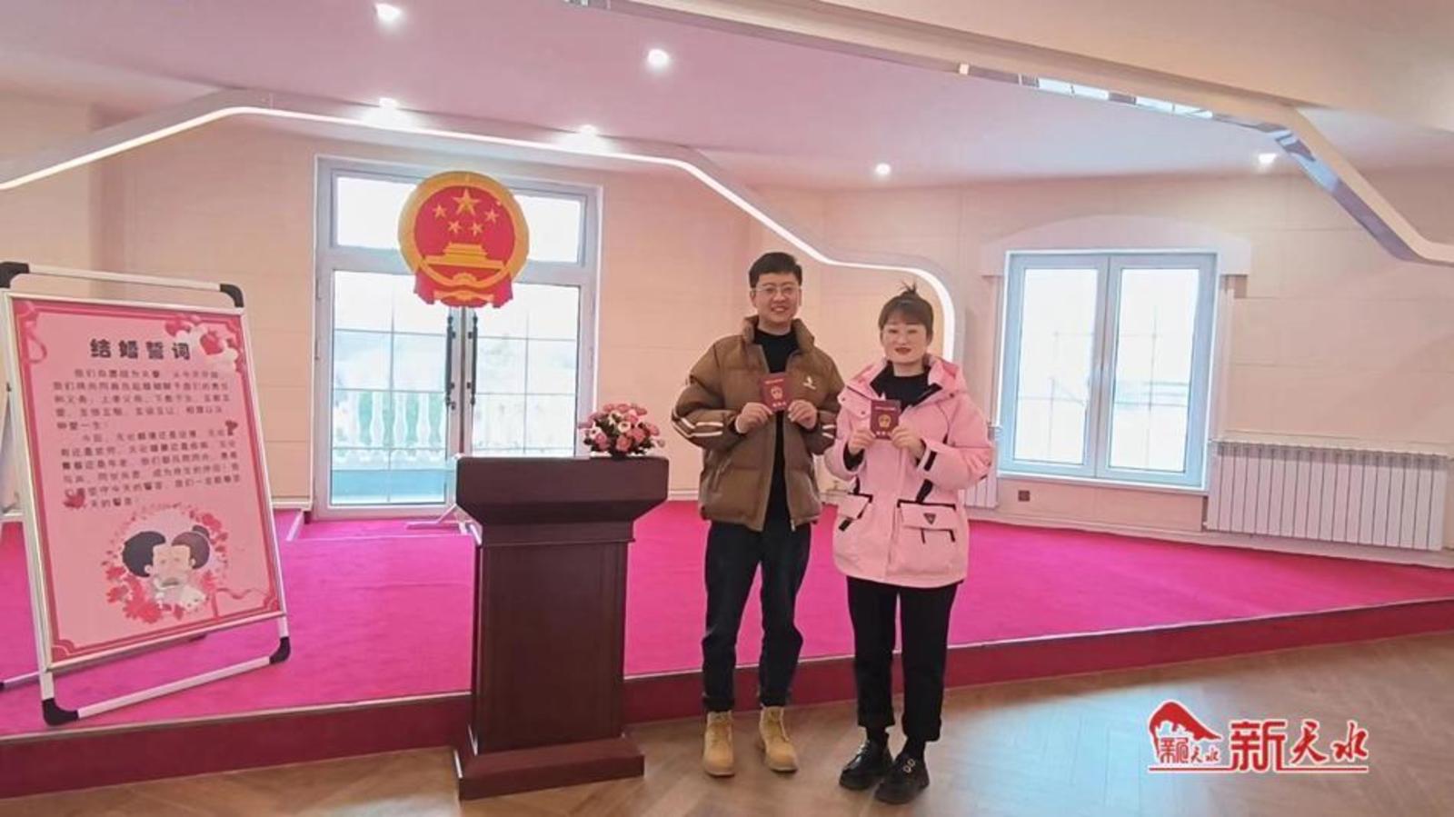 又讯 1月18日,在张家川县婚姻登记中心颁证大厅,刚领到结婚证的喜先生牵着新娘子的手激动地说:“腊八节寓意是平安喜乐,被认为是中国具有幸福色彩的传统节日之一。在这个预示着美好和幸福的日子里办理结婚登记,以这个特殊日子来纪念我俩的爱情之花。”