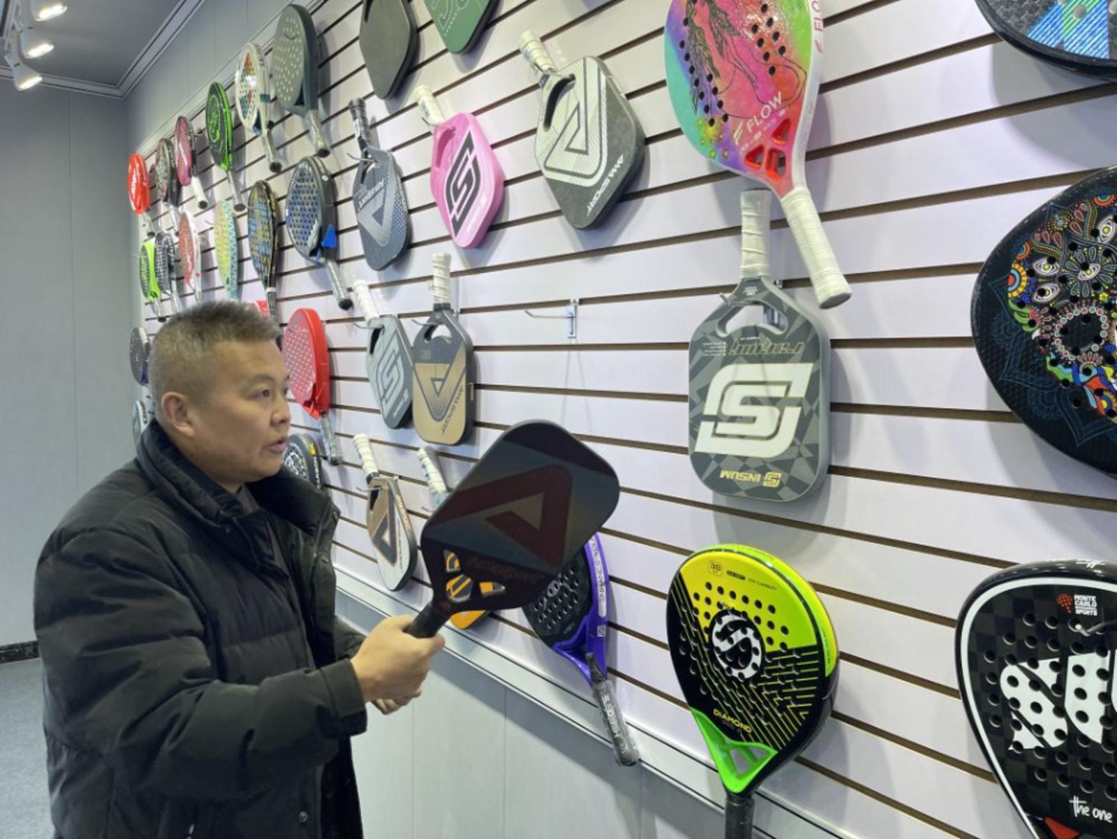 “匹克球打起来易于上手的原因之一,就是拍子采用碳纤维制作,材质非常轻。生产一个球拍,要经过裁切碳纤维预浸料、入模成型、粗磨、喷底漆、补胶等十几道工序。”杨凯介绍。