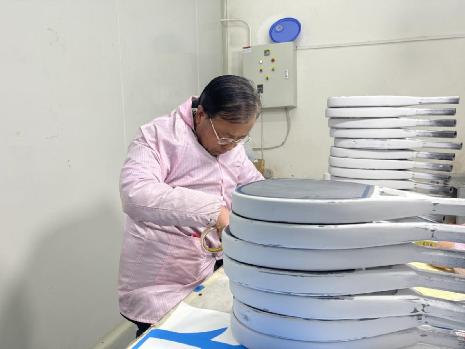 杨凯说,他们是一家“两头在外”企业,匹克球拍的生产原料和销售在外部市场,而加工生产的“C位”就在宁县。“一开始,老乡们从没见过匹克球拍,大多抱着试一试的态度来厂里工作。后来,大部分人留下了,公司现在有120多个工人。2022年,我们还在周边村庄建立了分厂。”