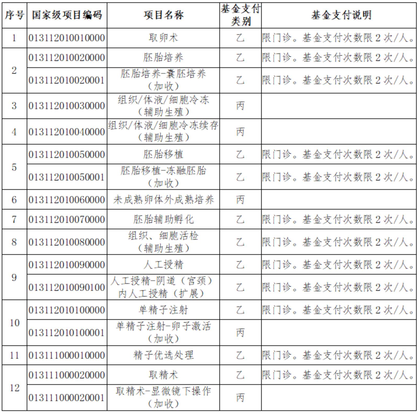附件:纳入基金支付范围的治疗性辅助生殖类医疗服务项目