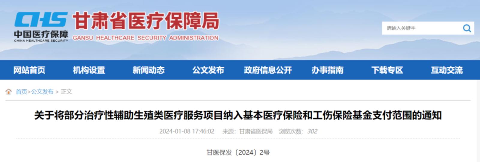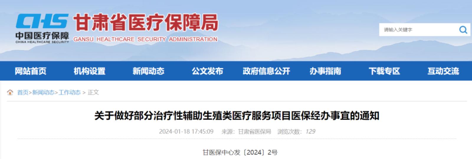 为贯彻甘肃省医疗保障局、甘肃省人力资源和社会保障厅、甘肃省卫生健康委员会《关于将部分治疗性辅助生殖类医疗服务项目纳入基本医疗保险和工伤保险基金支付范围的通知》(甘医保发〔2024〕2号),落实治疗性辅助生殖类医疗服务项目医保待遇,现将有关经办事宜通知如下:
