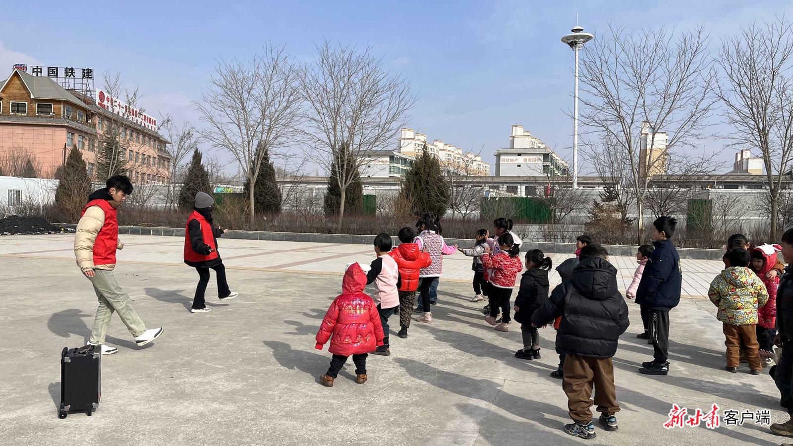 马品一带领孩子们做游戏。新甘肃·甘肃日报记者 韦德占 摄