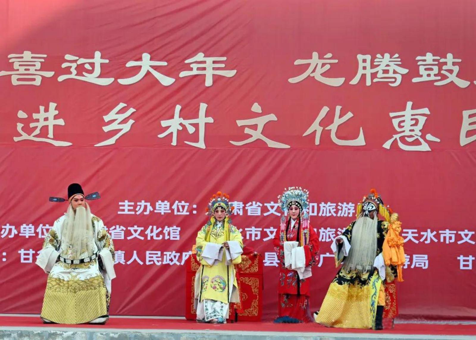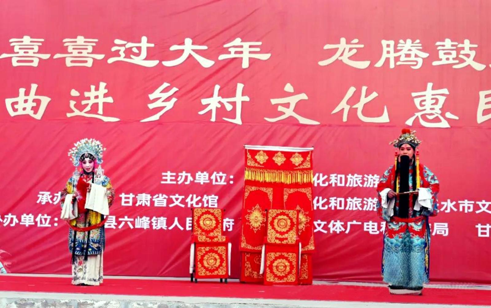 新天水讯【记者刘蕾】为推动优秀传统文化创造性转化、创新性发展,让老百姓过一个祥和、幸福的新春佳节,1月26日,甘谷县文化馆协办的“欢欢喜喜过大年·龙腾鼓舞贺新春”戏曲进乡村文化惠民演出活动在甘谷县六峰镇举行,提前让群众感受到了春节浓浓的文化氛围。