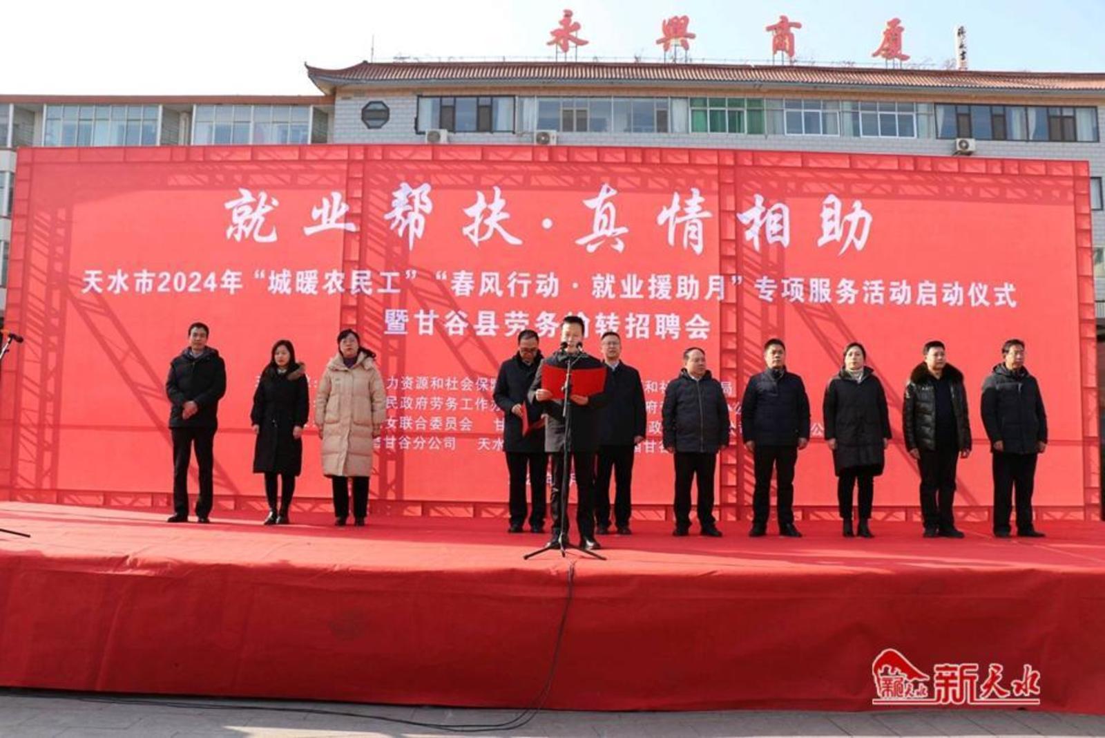 新天水讯【通讯员 黄鑫】 1月22日,天水市2024年“城暖农民工”“春风行动·就业援助月”专项服务活动启动仪式暨甘谷县劳务输转招聘会在甘谷县大什字广场举行,天水市各县区结合各自特色推出各项活动,为有用工需求的单位和有求职意愿的劳动者搭建对接交流平台。
