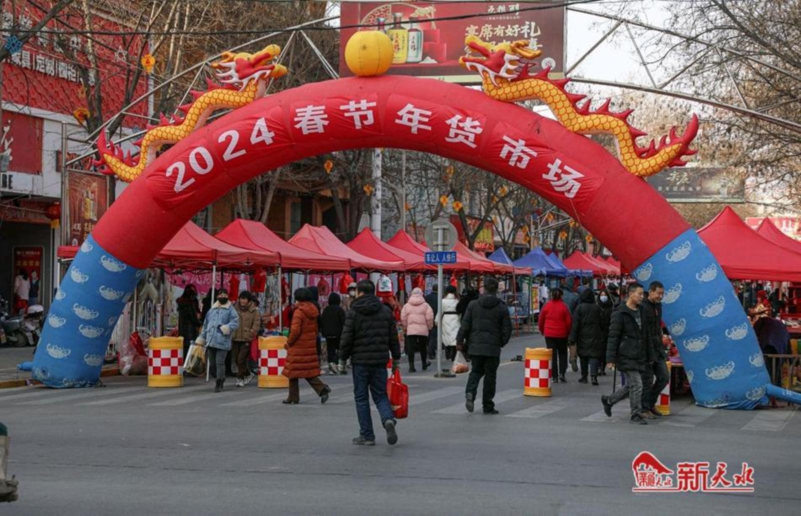 “来来来,巧克力糖果看一看。”“福字春联和灯笼,赶紧选一选。”年货市场上吆喝声不绝于耳。秦安县城市管理行政执法局副局长赵永胜说:“在城区公共区域设置2024年春节年货市场,时间是从1月24日开始至2月9日结束,为期15天。”