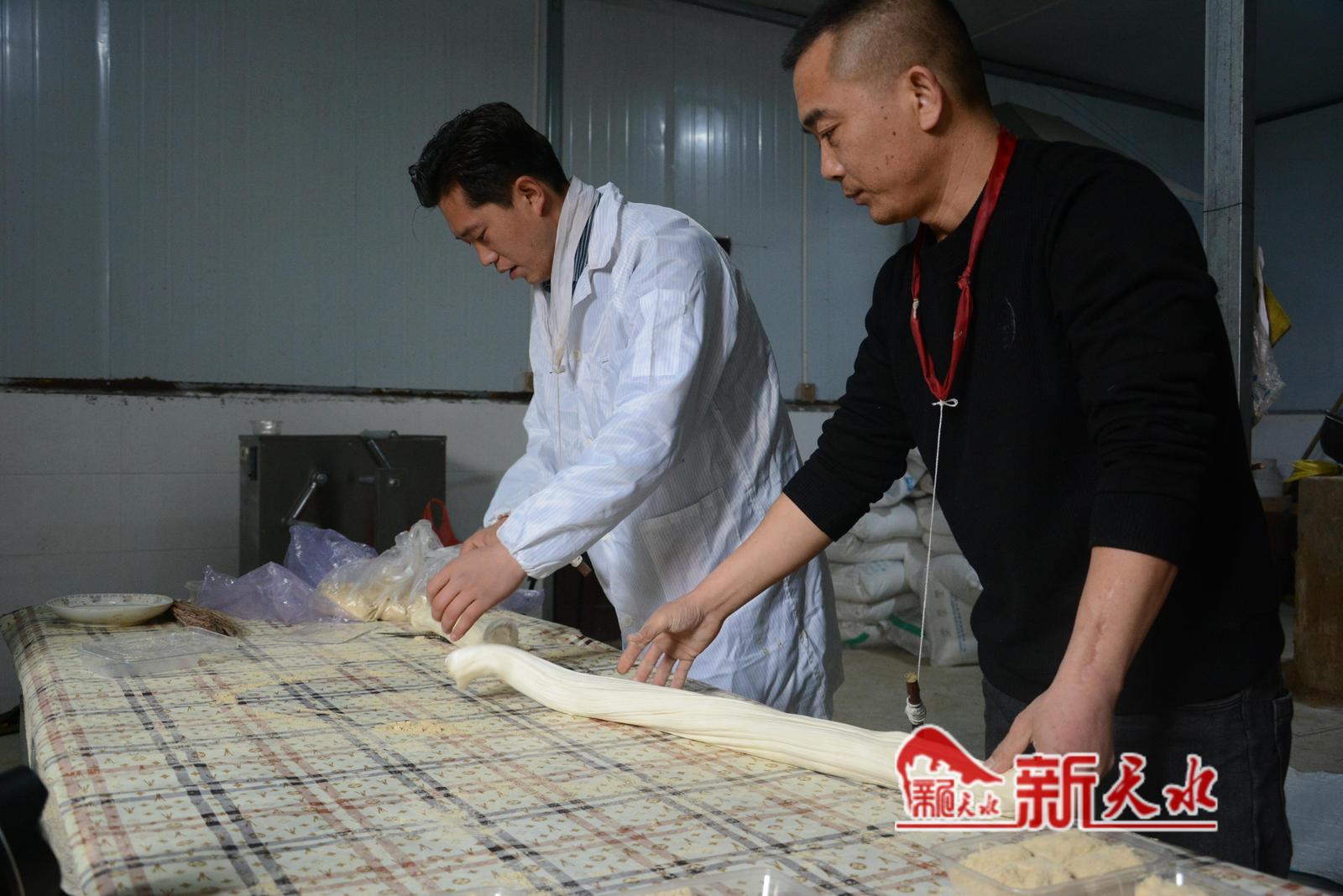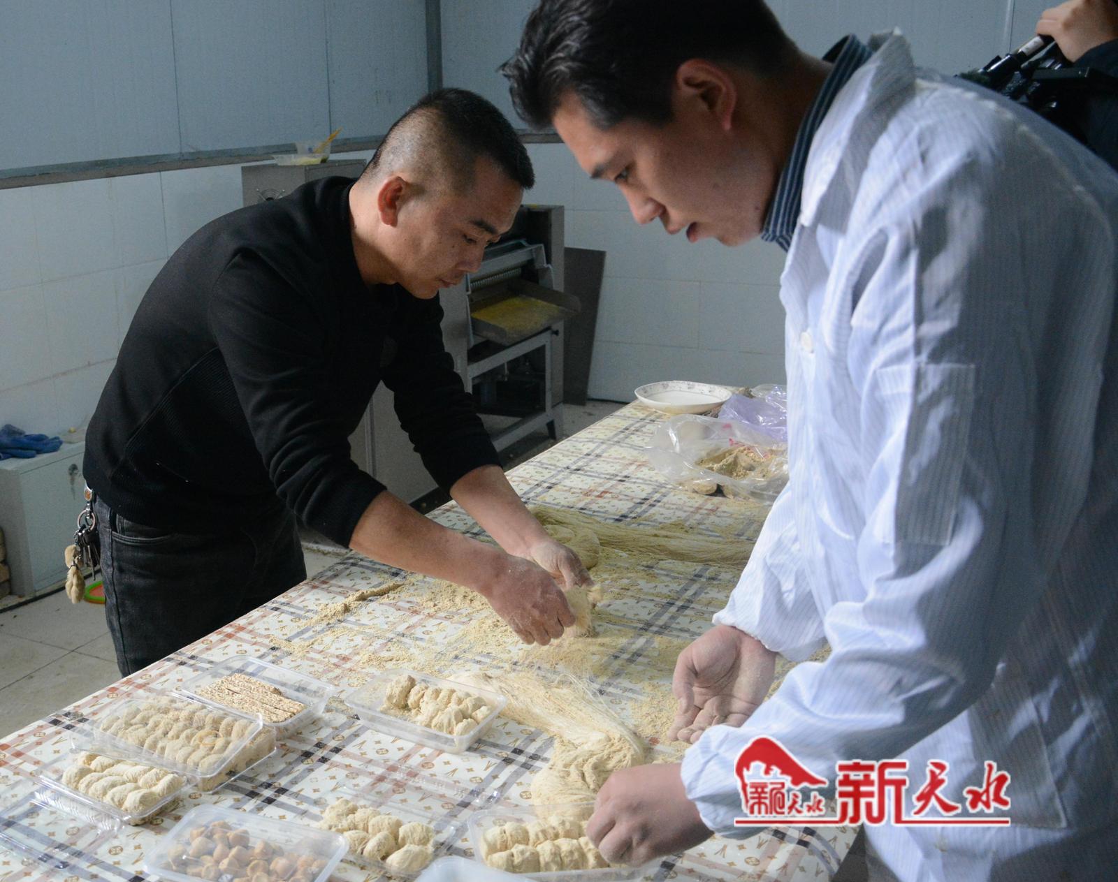 龙须糖,至少需要两人合力完成,制作过程十分精妙。记者看到,糖稀在田觐伟和助手的反复拉伸中越变越细,和上醇香的黄豆面,增加糖的韧性。起初还是一段较硬的糖条,经过田觐伟和助手一番娴熟操作,就变成了柔软的糖丝,细如龙须,吃起来酥甜可口,香气四溢。