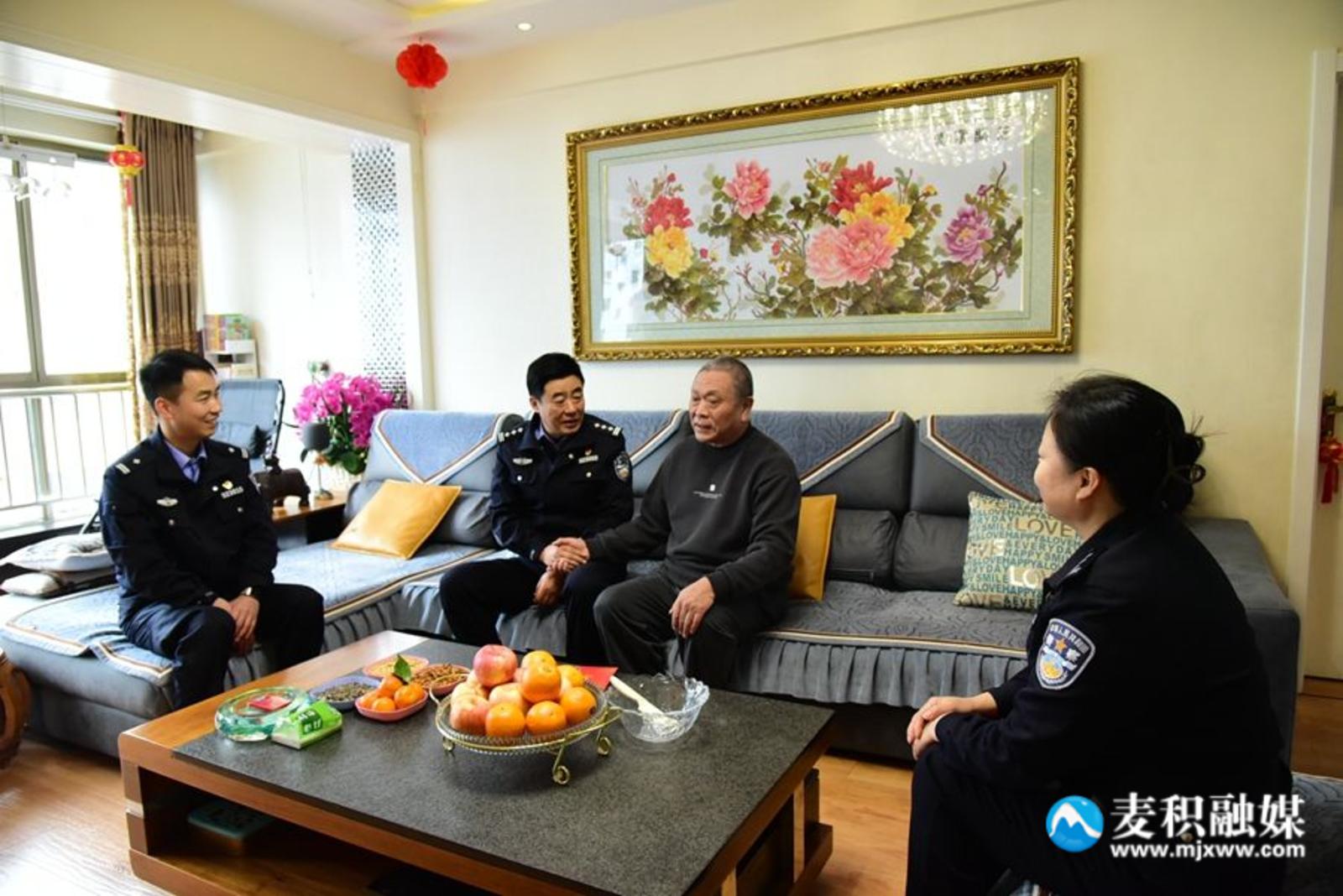 新天水讯 据麦积区融媒体中心消息 岁寒情深暖意浓,殷殷关怀沁人心。为全面落实爱警暖警举措,传递对基层民辅警的关心关爱,近日,副区长、麦积公安分局党委书记、局长王禳虎带领分局党委班子分别走访慰问离退休老干部、优秀党员民辅警、困难民辅警、因公负伤民辅警、基层所队、因公牺牲民辅警家属、武警中队和高速交警支队甘泉大队等兄弟单位,为他们送去慰问金、慰问品,表达分局党委的深切关怀和新春问候。
