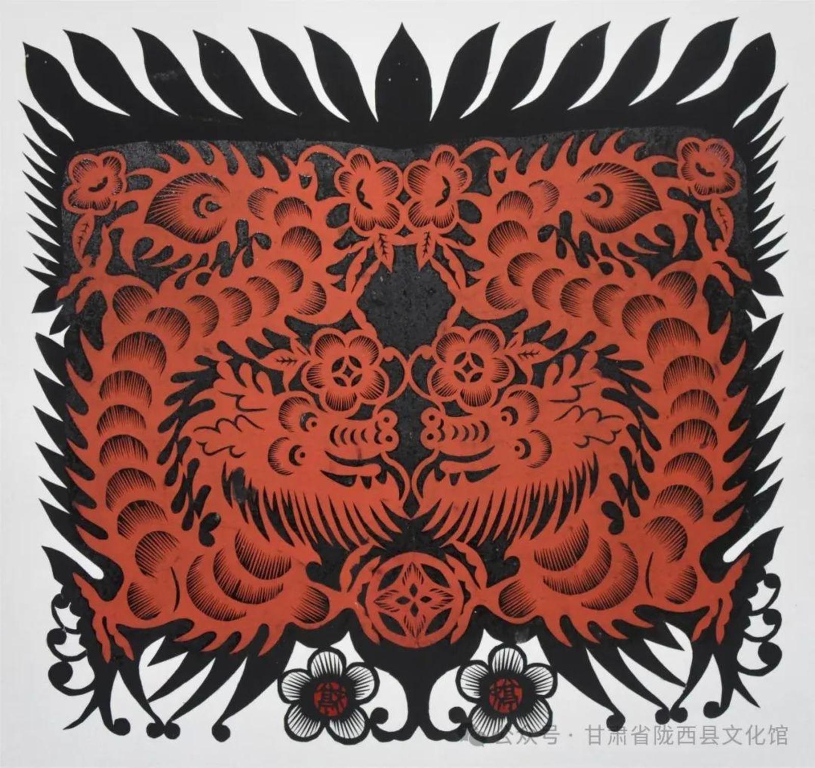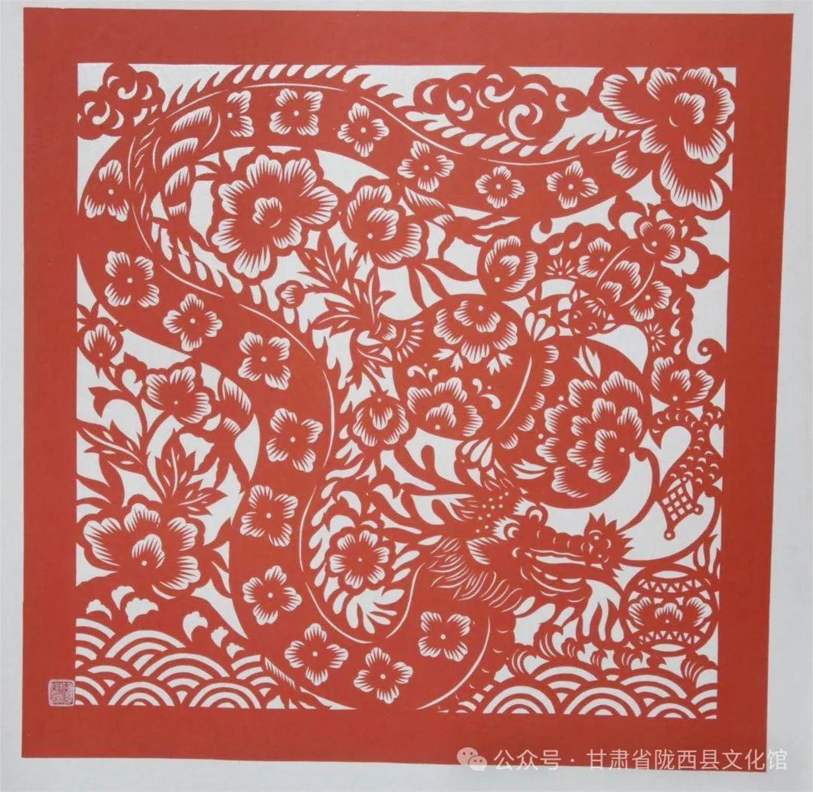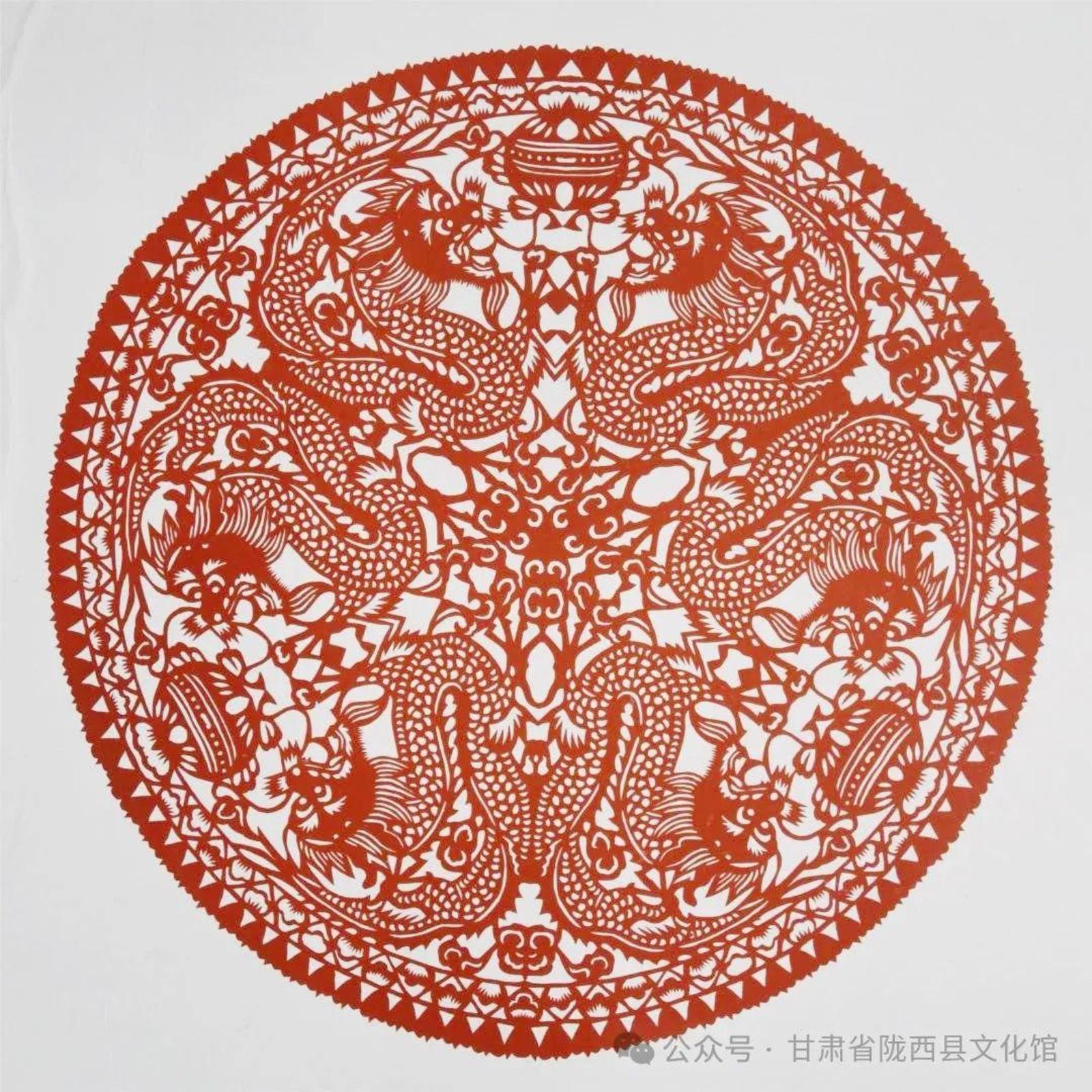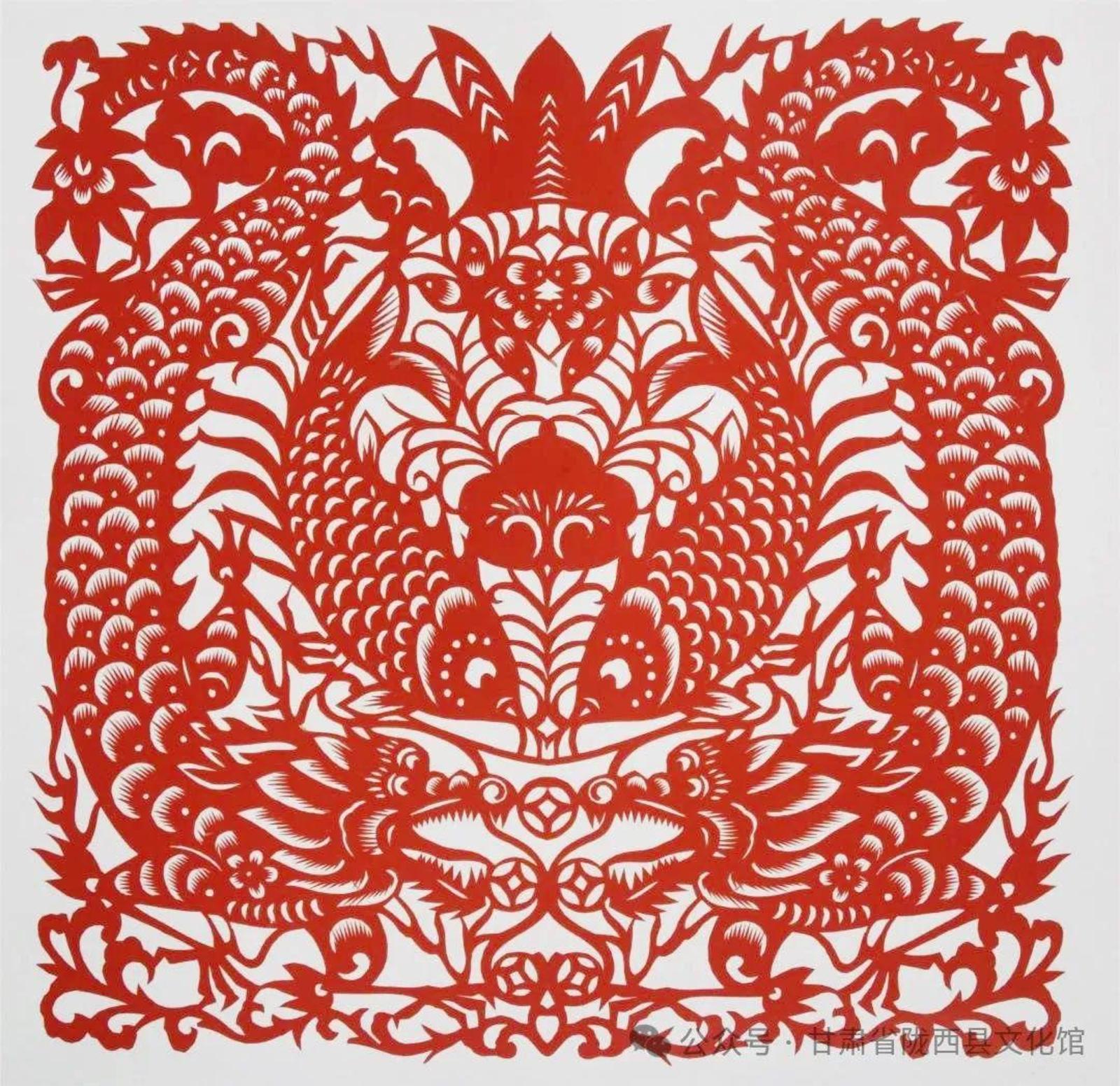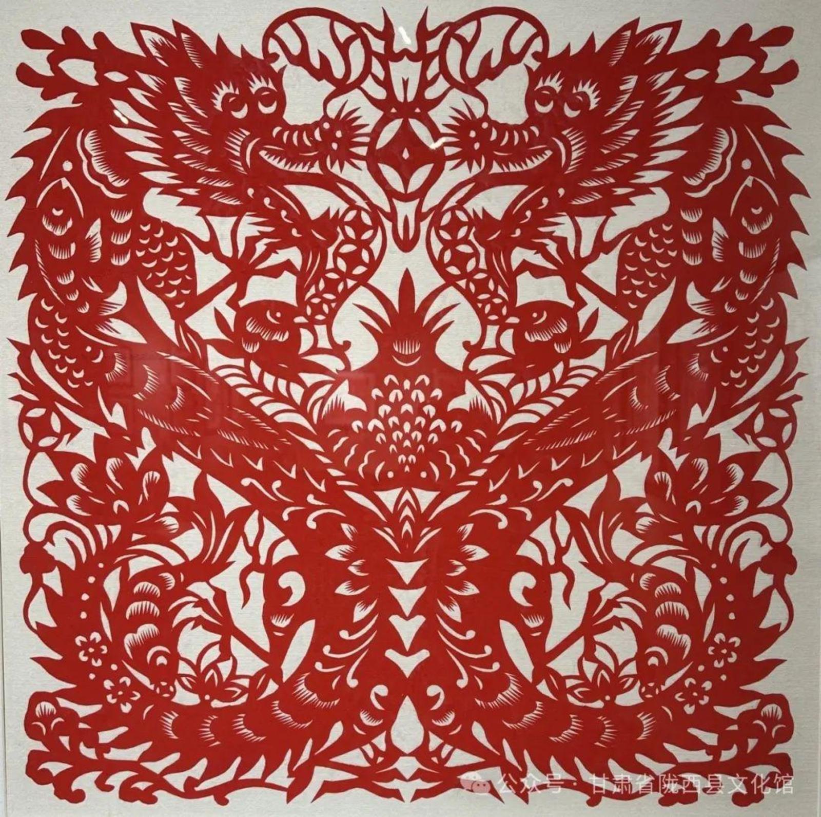 他们来自陇东、陇东南、陇中、河西走廊等不同地方,以各具特色的地缘、地域文化样本和艺术语言为承载,将多样性和多元性的文化信息、剪纸艺术技法叠加融合,执剪为笔,龙翔凤翥。他们将各自心中的“龙”图腾编织成不同的美丽故事,用花团簇拥的精巧和精致呈现给大家。匠心独具,意象灿烂。