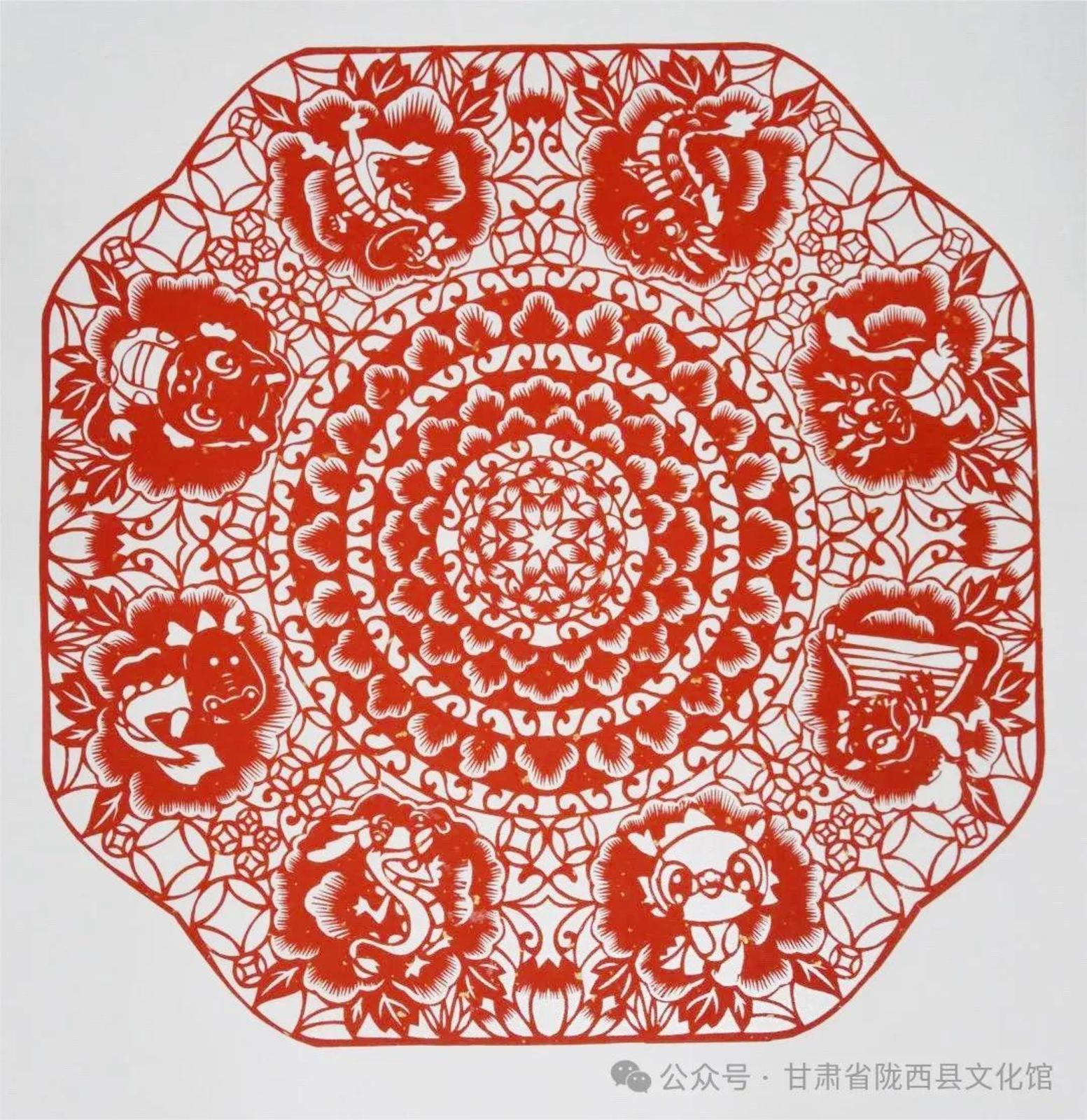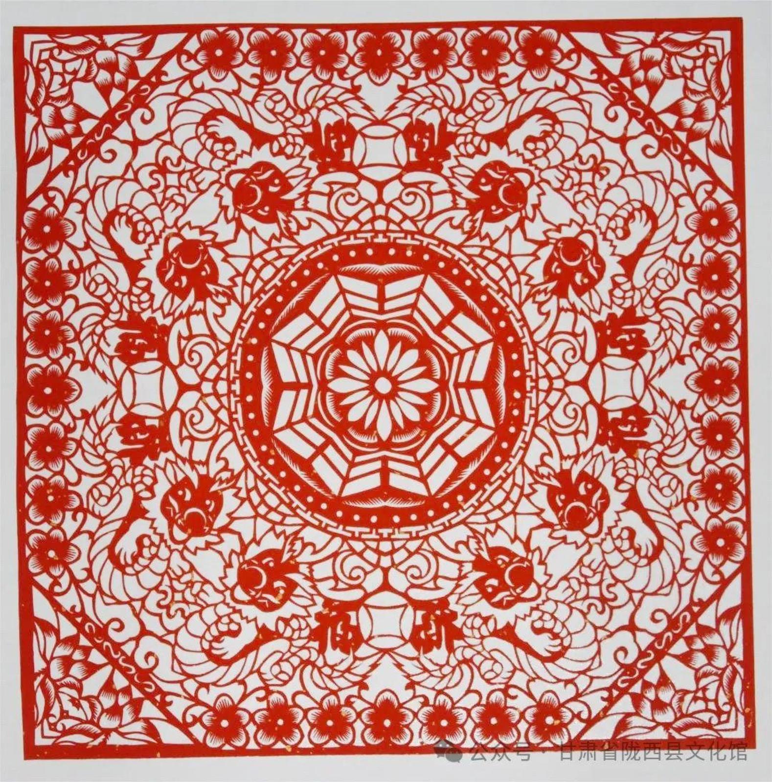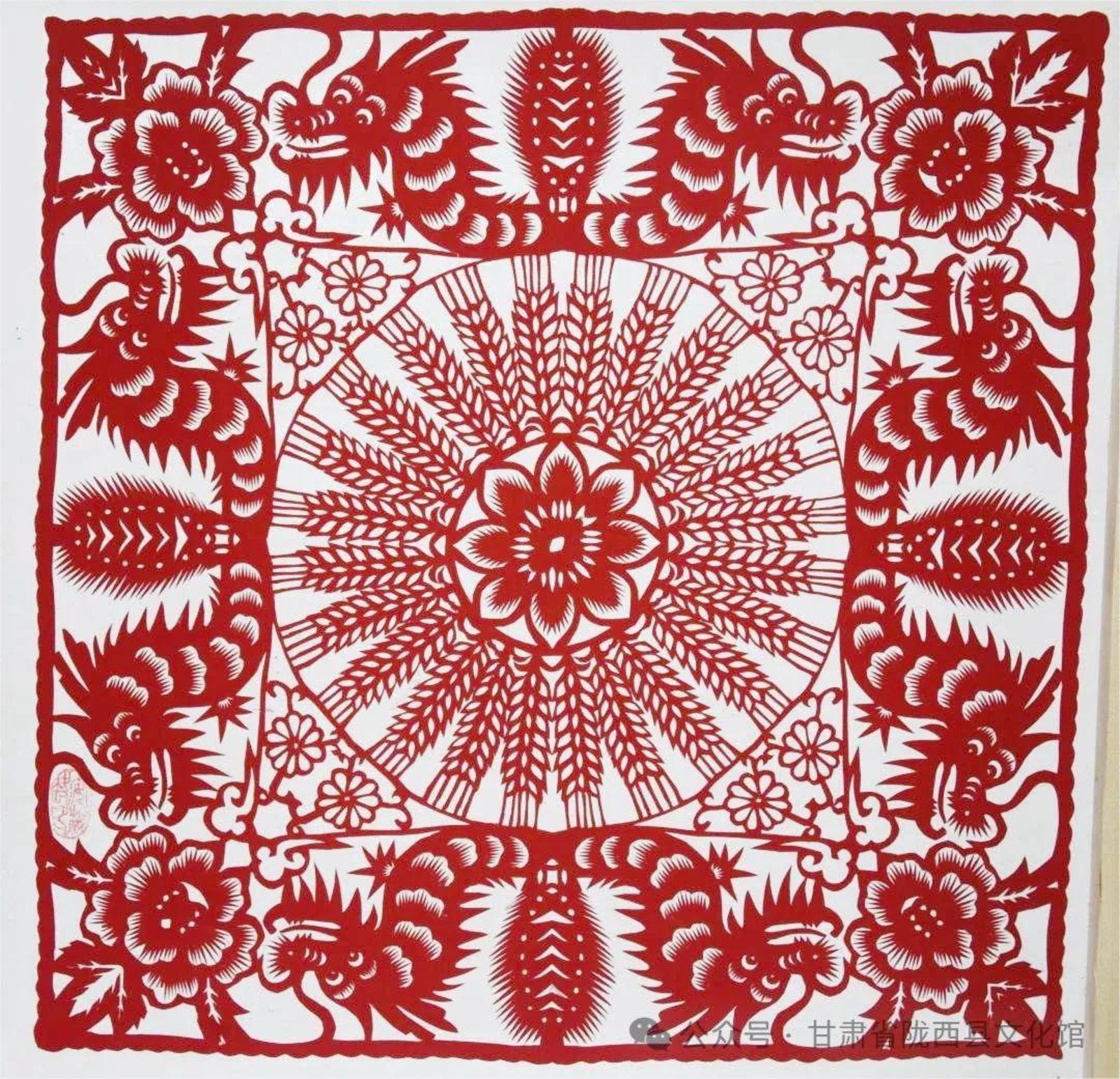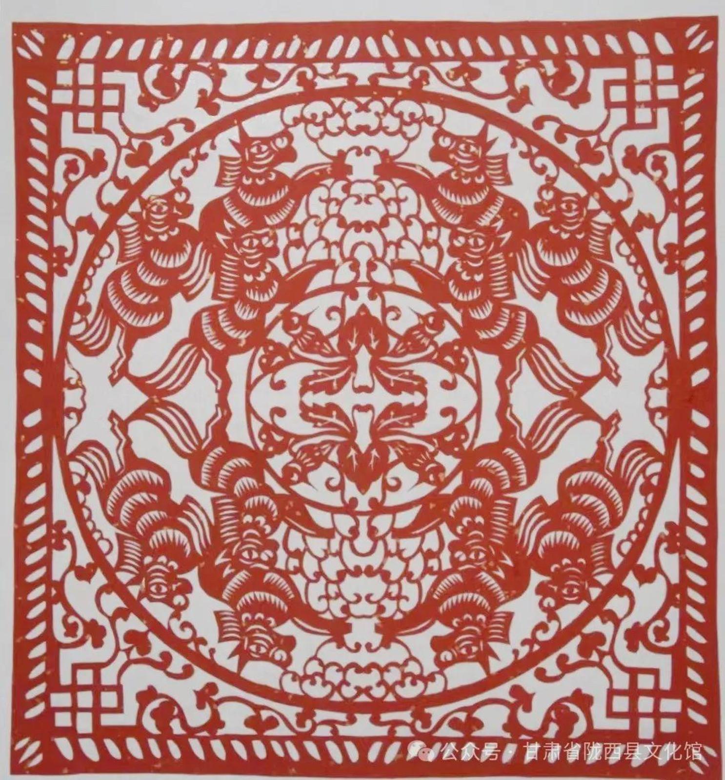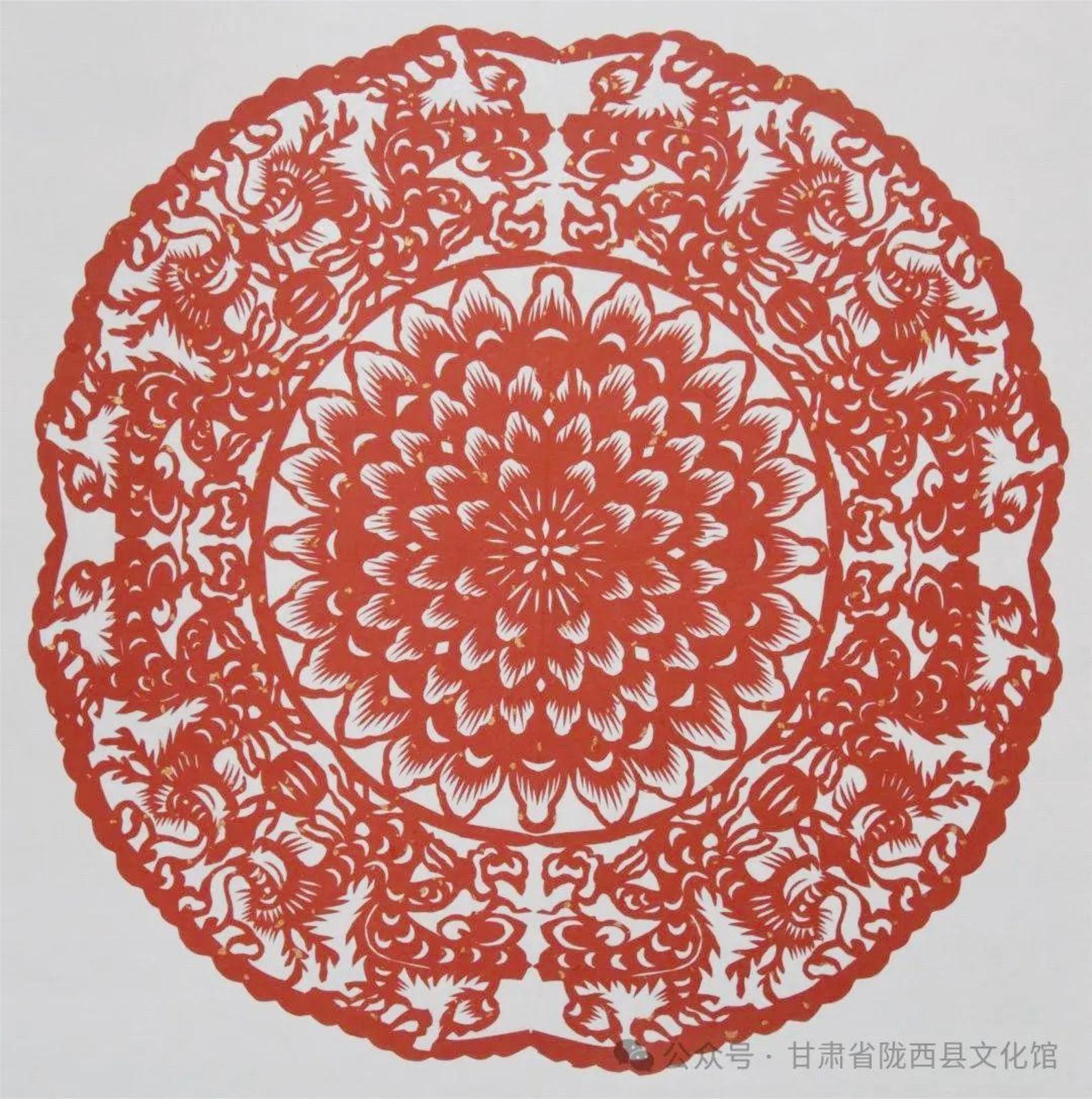他们来自陇东、陇东南、陇中、河西走廊等不同地方,以各具特色的地缘、地域文化样本和艺术语言为承载,将多样性和多元性的文化信息、剪纸艺术技法叠加融合,执剪为笔,龙翔凤翥。他们将各自心中的“龙”图腾编织成不同的美丽故事,用花团簇拥的精巧和精致呈现给大家。匠心独具,意象灿烂。