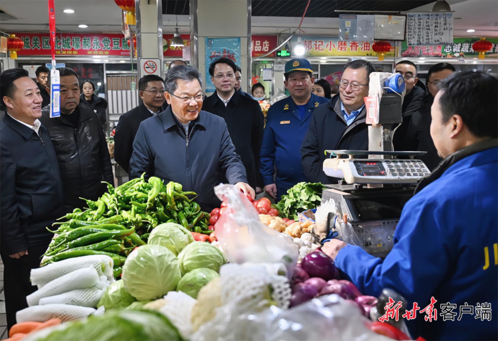 兰州市城关区木塔巷菜市场,农副产品一应俱全,置办年货的市民络绎不绝。任振鹤与工作人员、市场商贩亲切交谈,问货源、问储备、问价格、问供应。他强调,春节是传统的消费旺季,要不断健全“监测、调度、储备”三张网,及时掌握生活必需品重点品种生产、流通、消费的基本情况,切实加强节日期间民生商品的产销保供,确保数量充足、品种丰富、质量放心、价格稳定,让广大群众放心消费、快乐过年。