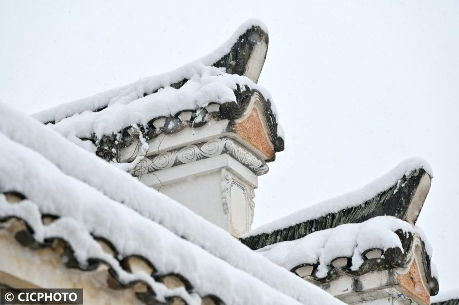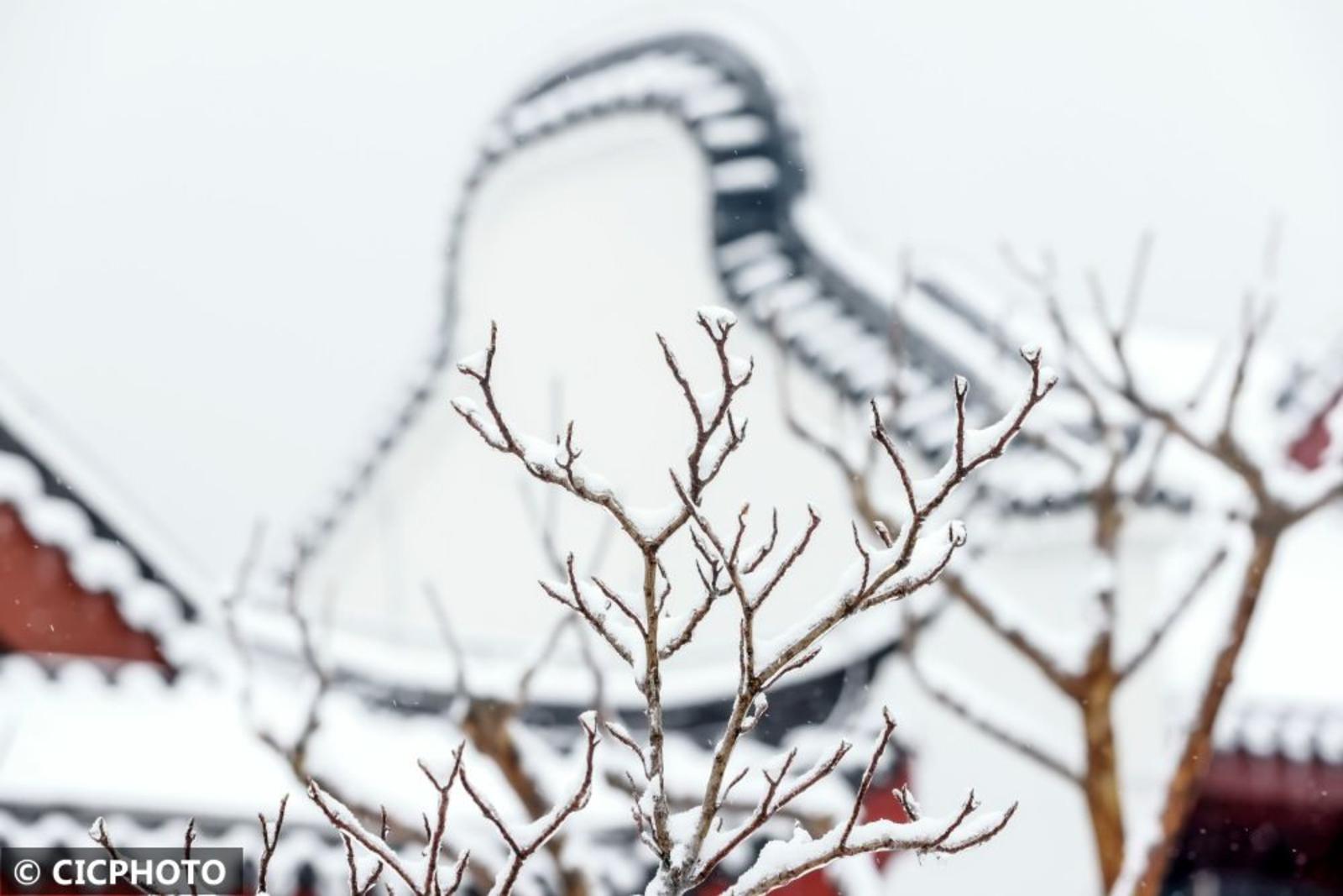雪景映衬下,文物古建和中式建筑呈现如同国画的美景。